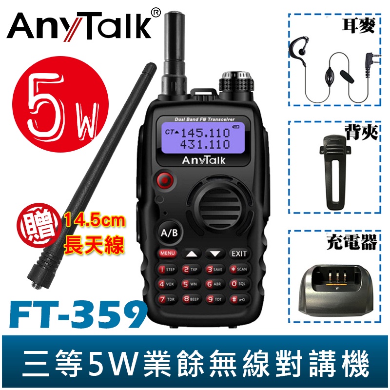 AnyTalk FT-359 三等 5W 業餘無線對講機 雙頻 雙待 大功率 雙天線 無線電 對講機 KTV call機