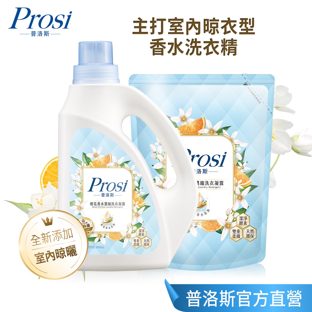 【Prosi普洛斯】 室內晾曬橙花香水濃縮洗衣凝露(BKC專利消臭緩釋配方) (室內晾衣型 橙花 香水洗衣)1瓶【2件以下可超取】|1瓶+6補包【限賣家宅配-箱購】|1瓶+2補包|1瓶+4補包【限賣家宅配-箱購】|2瓶+4補包【限賣家宅配-箱購】Laundry CareProsi普洛斯官方直營店_普洛斯Prosi/御衣坊Akira
