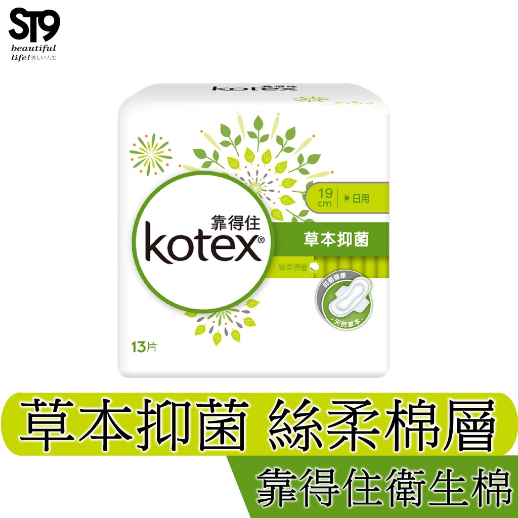 Kotex 靠得住 草本抑菌 絲柔棉層 日用 19CM 衛生棉 獨家天然抑菌精華 有效抑菌達99% 潔淨舒適