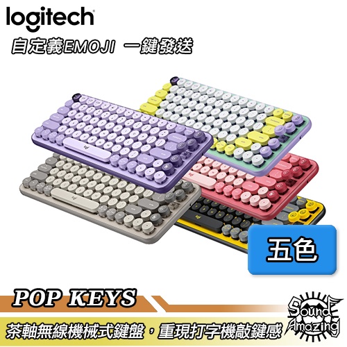 羅技 POP KEYS 無線機械式鍵盤(茶軸) 中文鍵盤 支援BOLT/藍牙 復古圓形鍵帽【Sound Amazing】酷玩黃(贈emoji手托|魅力桃(贈emoji手托KeyboardsSound Amazing