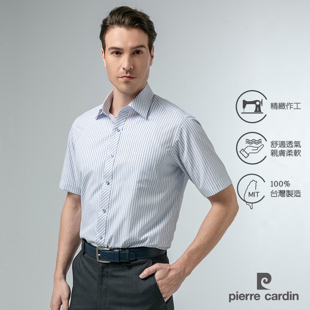 【pierre cardin 皮爾卡登】男襯衫 抗皺舒適棉混紡條紋短袖襯衫_白底藍條(52262-30)白底藍條,44|白底藍條,45|白底藍條,38|白底藍條,39|白底藍條,40|白底藍條,41|白底藍條,42|白底藍條,43|白底藍條,37Shirtspierre cardin 皮爾卡登|襯衫官方旗艦館