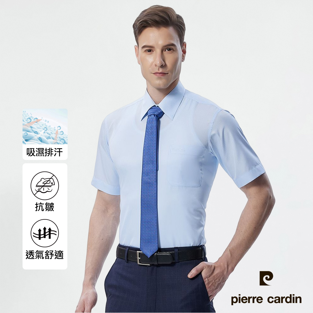 【pierre cardin 皮爾卡登】男襯衫 吸濕排汗免燙抗皺清爽觸感素色暗紋短袖襯衫_水色(91151-31)水色,37|水色,38|水色,40|水色,42|水色,44|水色,39|水色,41|水色,43|水色,45Shirtspierre cardin 皮爾卡登|襯衫官方旗艦館