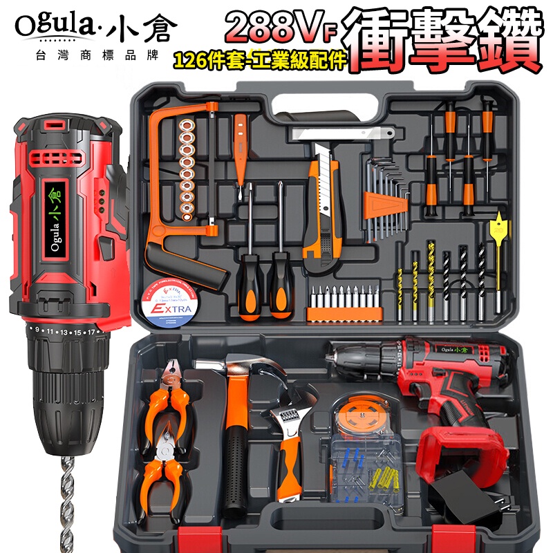 【Ogula小倉】電鑽 288Vf衝擊鑽【贈126件工具套裝】衝擊扳手 雙速正反轉【10倍蝦幣回饋】