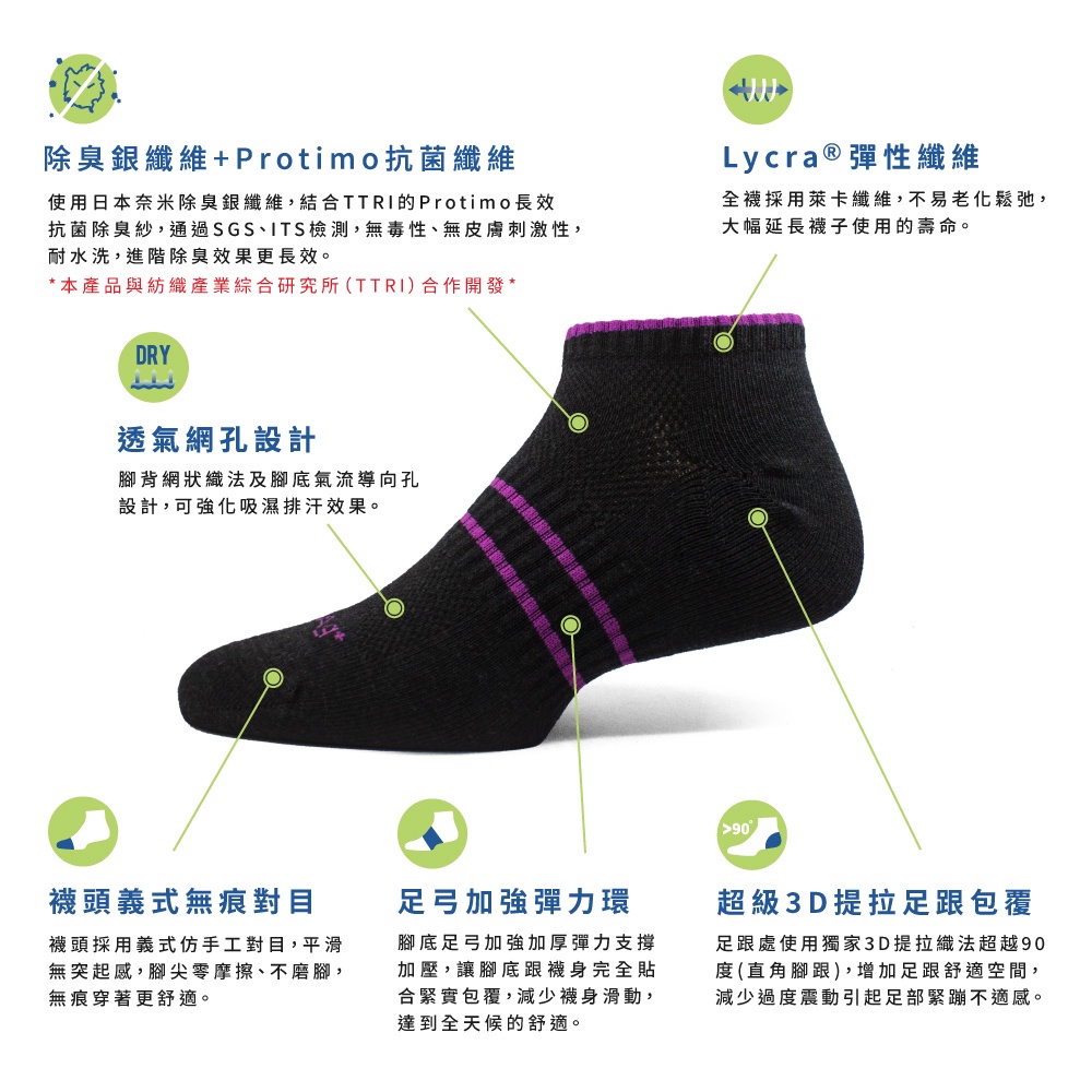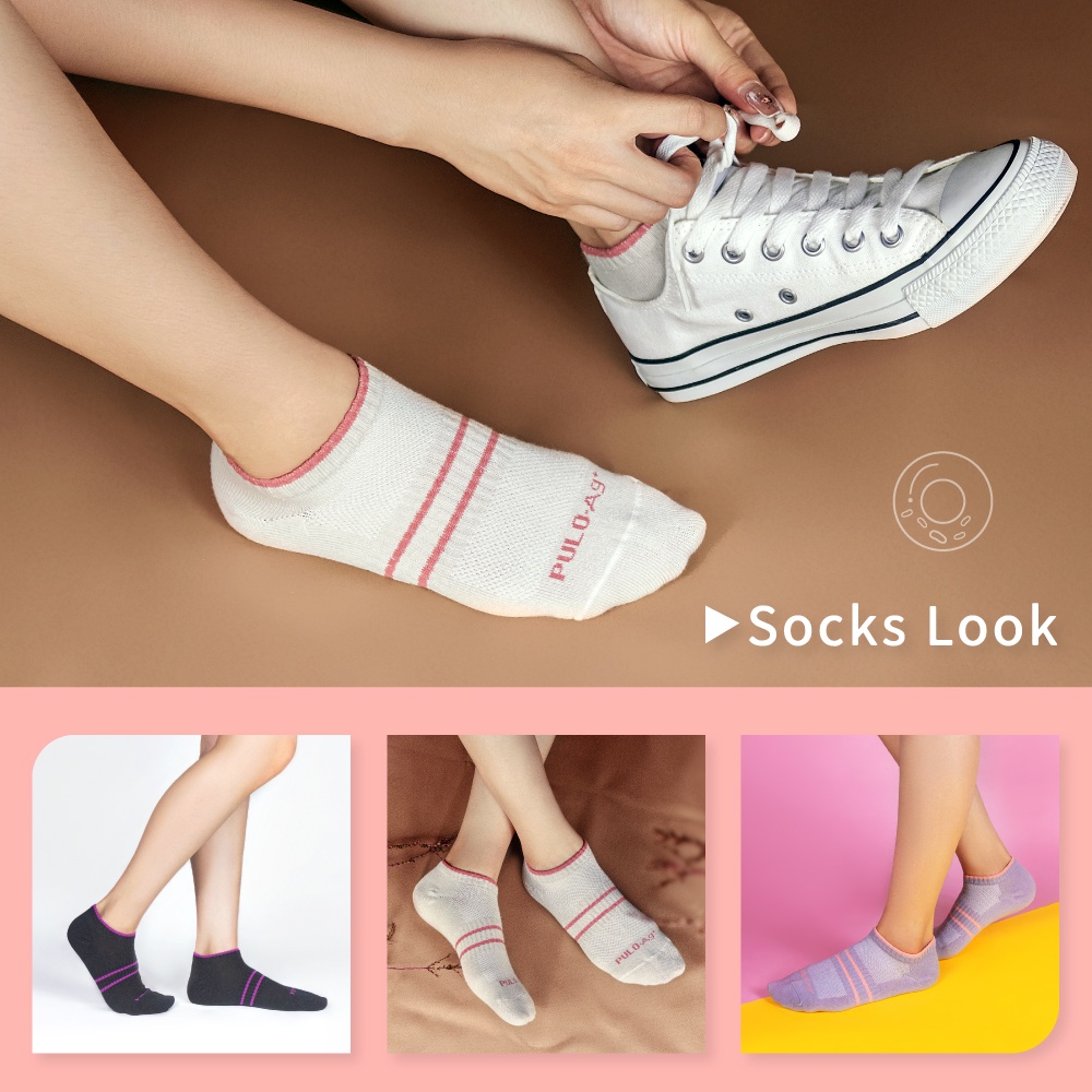 PULO-穿立淨貝果踝襪 除臭襪 消臭襪 隱形襪 船型襪 絕不掉跟 一般厚度 足跟加大 雙倍除臭 加強透氣乾爽舒適