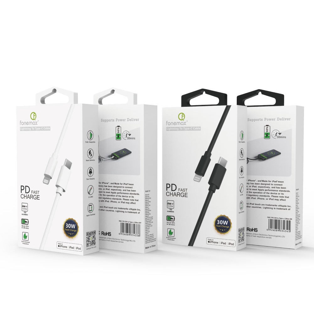 Fonemax MFI認證充電線 TypeC Lightning 適用iPhone PD快充線 蘋果快充 W72白色|黑色Cables, Chargers & ConvertersQ哥 旗艦商城|最專業的保護貼手機配件