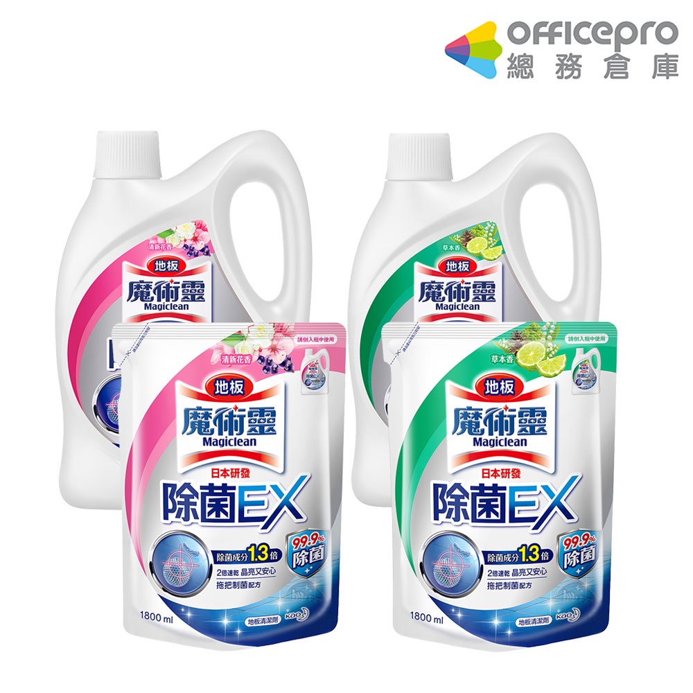 魔術靈 除菌EX地板清潔劑 2L瓶裝/1.8L補充包 清新花香/草本香 家用清潔劑|Officepro總務倉庫