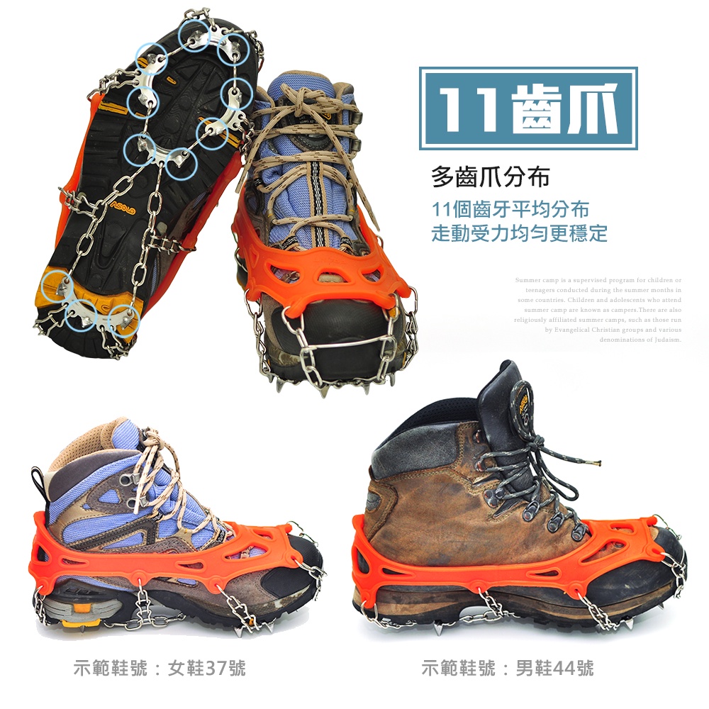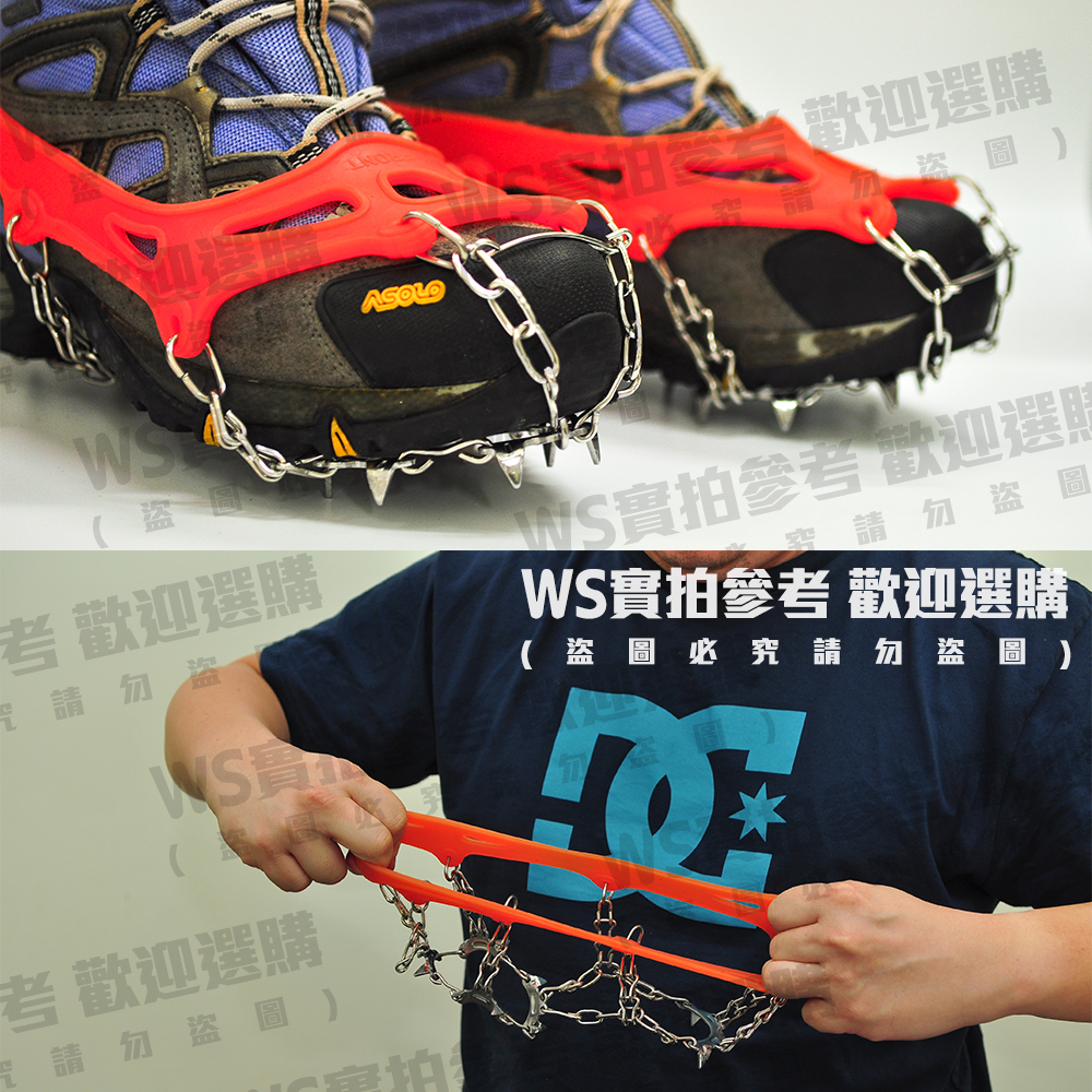 11齒冰爪《名雪購物》賞雪必備 雪地防滑防跌 抓地力強 不銹鋼鏈冰爪 鞋釘套 雪地鞋鏈 簡易冰爪橘色M號-鞋碼35~40號|橘色L號-鞋碼37~44號|黑色款-鞋碼35~44號Ice Skating & Winter SportsNayuki 名雪購物