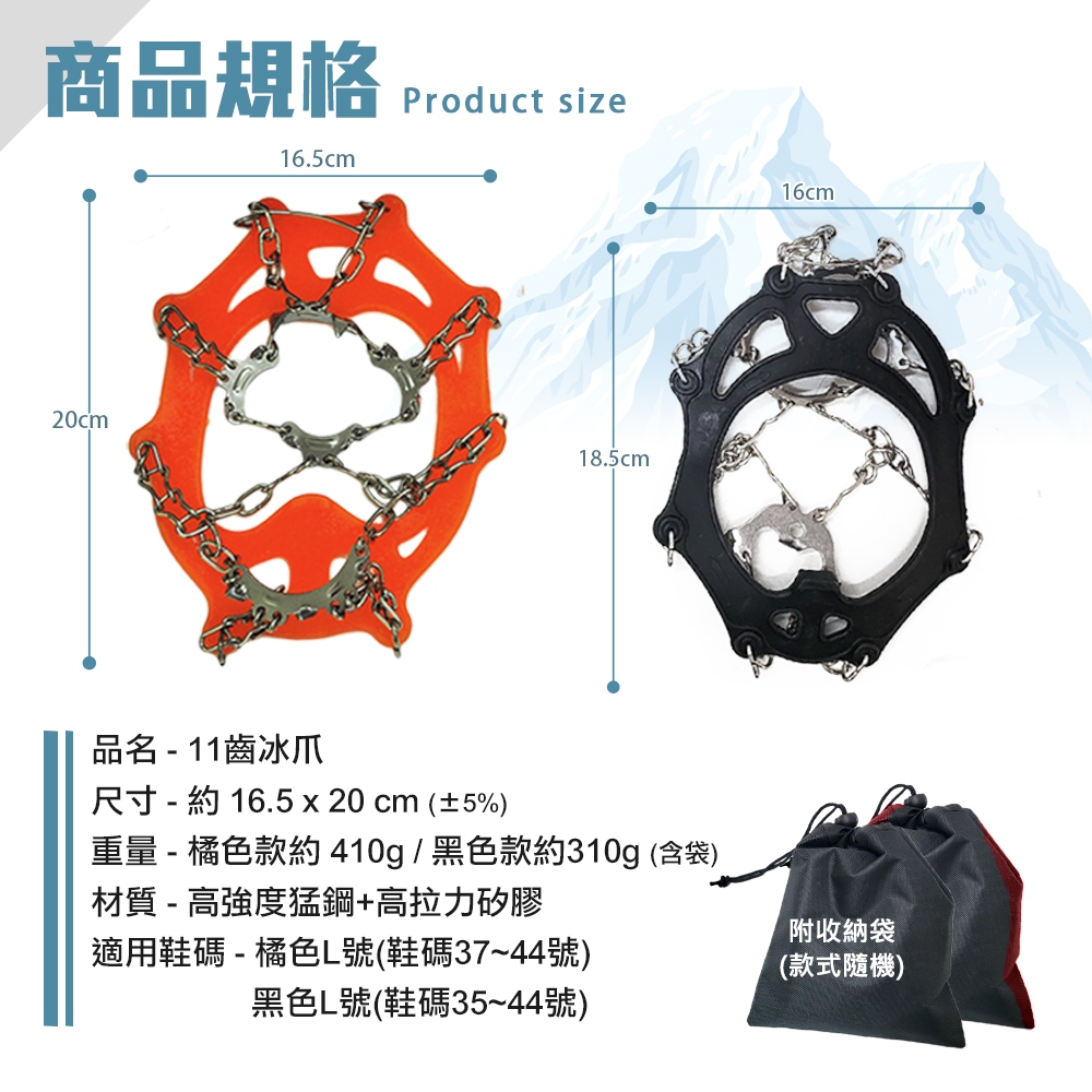 11齒冰爪《名雪購物》賞雪必備 雪地防滑防跌 抓地力強 不銹鋼鏈冰爪 鞋釘套 雪地鞋鏈 簡易冰爪