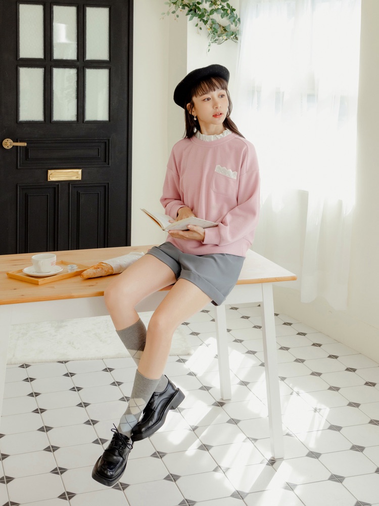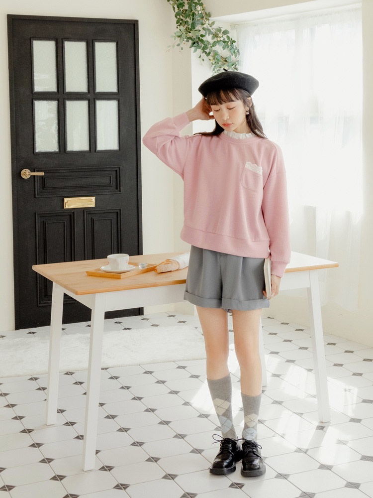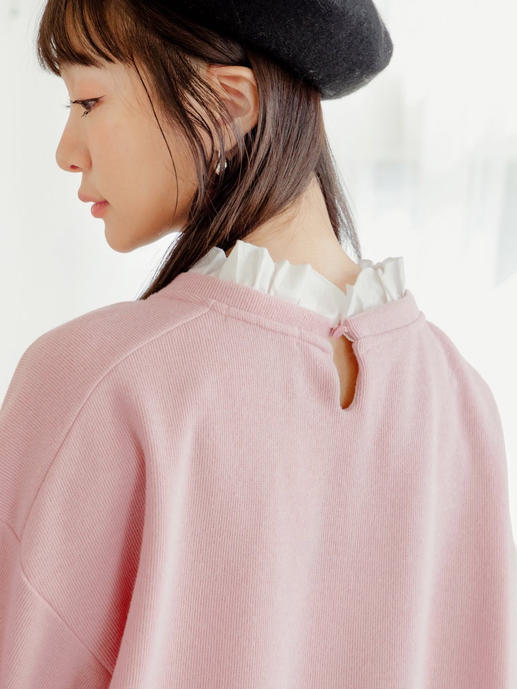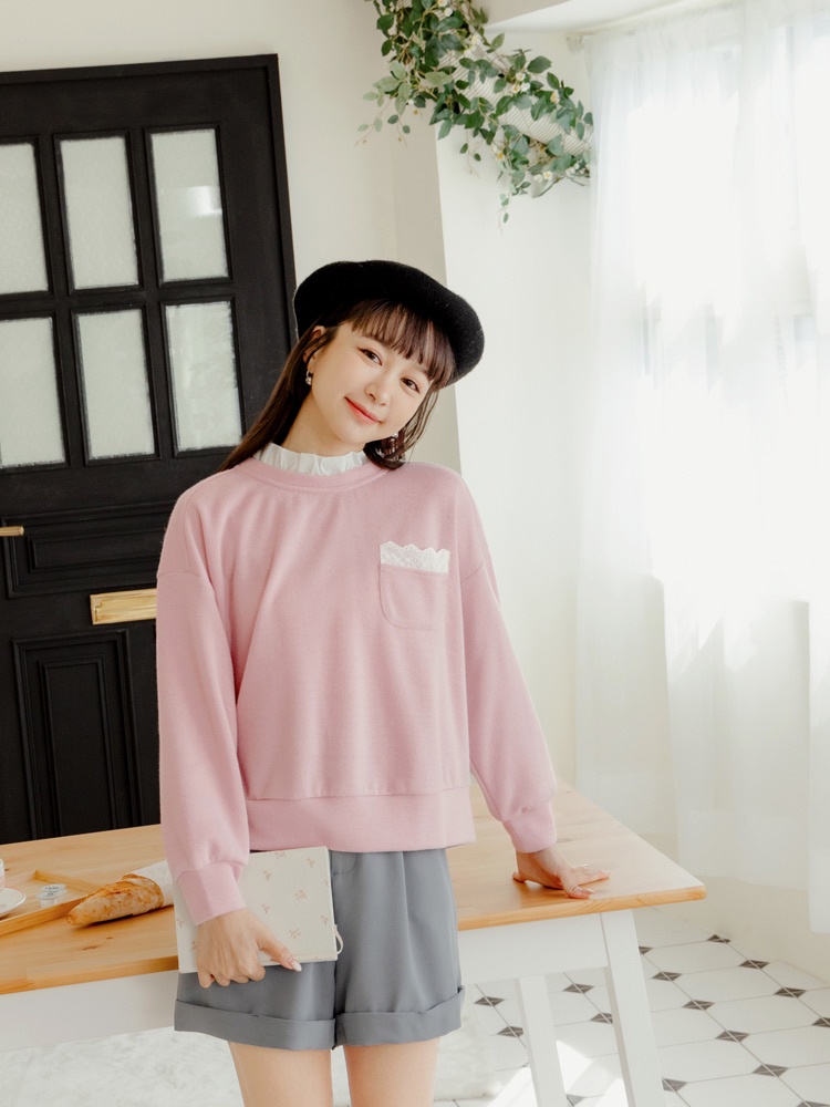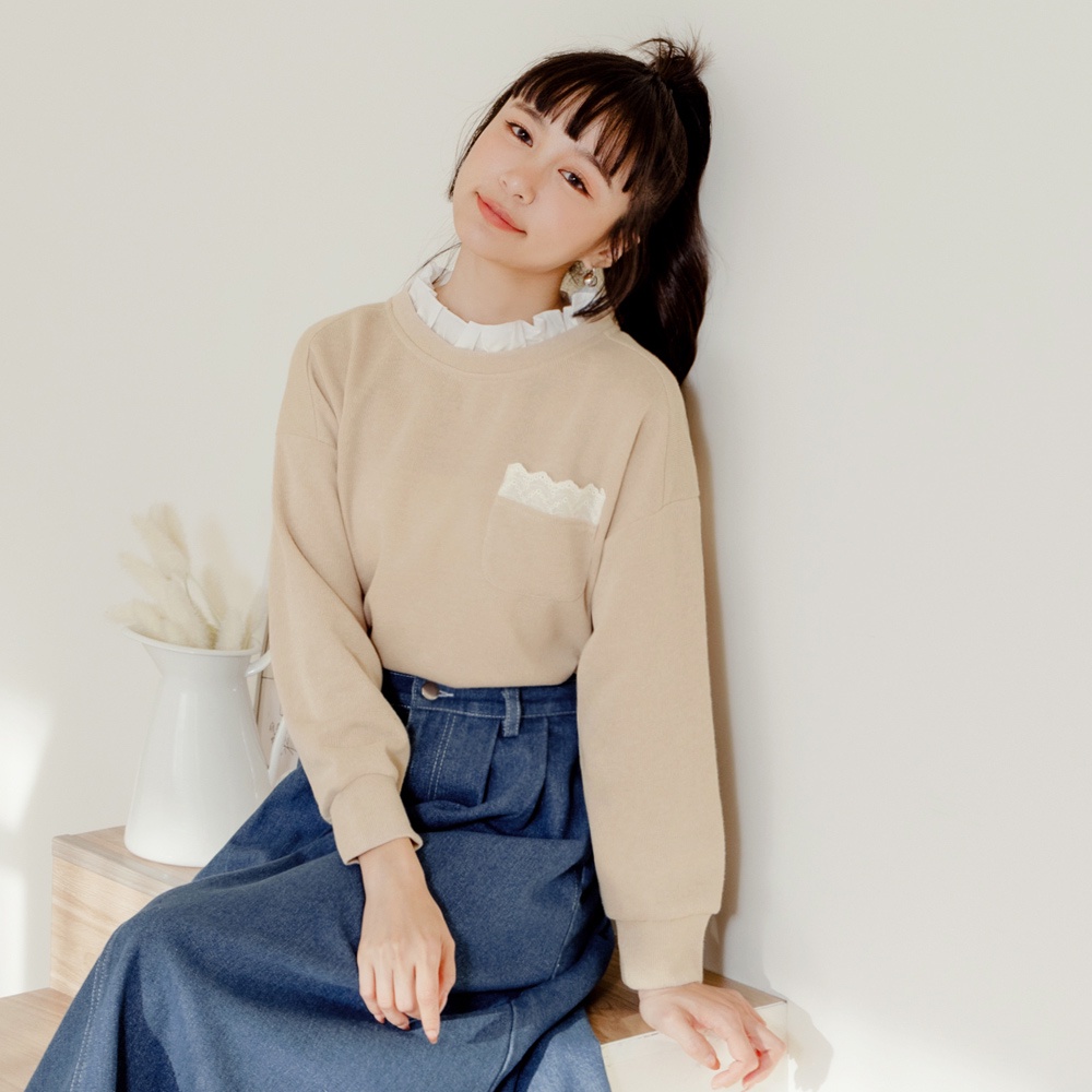 OB嚴選 假兩件荷葉領蕾絲拼接大學TEE 《AB19203》大尺碼/現貨/女裝卡其杏,M|卡其杏,L|卡其杏,XL|卡其杏,2L|卡其杏,3L|灰粉,M|灰粉,L|灰粉,XL|灰粉,2L|灰粉,3LT-shirtsOB嚴選官方旗艦店