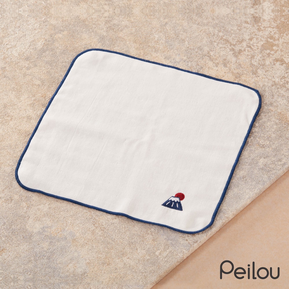 貝柔刺繡抑菌紗布小方巾-富士山(單入)富士山(藍)BibsPeilou 貝柔
