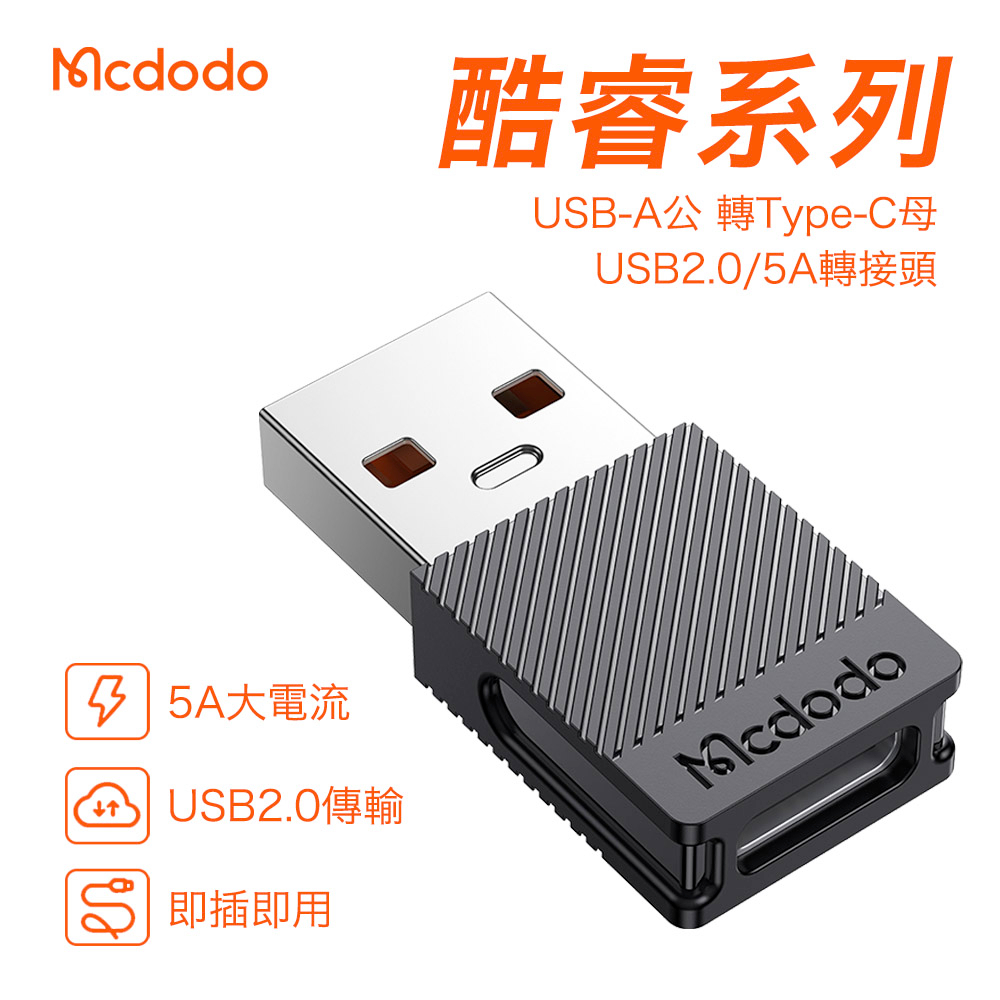 Mcdodo 酷睿系列 USB-A USB2.0 轉接頭 TypeC 超級快充 5A 轉換頭