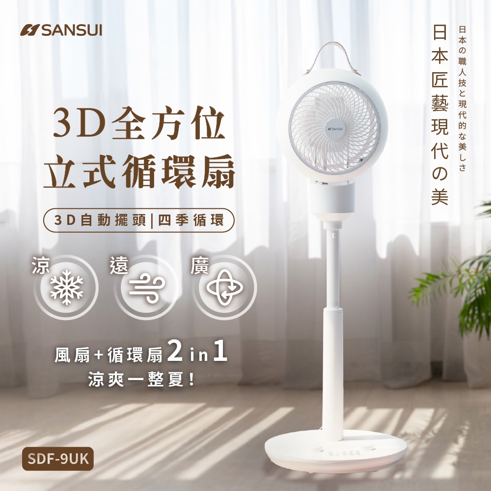 【SANSUI 山水】3D全方位立式循環扇 3D全方位擺頭 9段升降 12段定時 電風扇 SDF-9UKSDF-9UKCoolingSANSUI山水 官方旗艦店 | 創造美好舒適生活