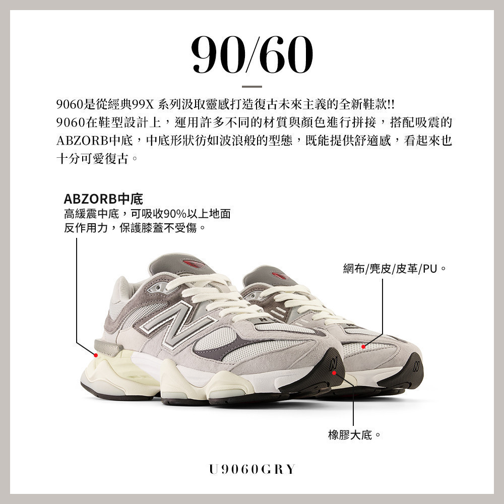 【New Balance】 NB 復古運動鞋_中性_元祖灰_U9060GRY-D楦 9060US6.0-24cm|US10.0-28cm|US4.0-22cm|US5.0-23cm|US5.5-23.5cm|US6.5-24.5cm|US13.0-31cm|US7.5-25.5cm|US8.5-26.5cm|US9.5-27.5cm|US11.0-29cm|US4.5-22.5cm|US7.0-25cm|US8.0-26cm|US9.0-27cm|US10.5-28.5cm|US12.0-30cmOthersNew Balance 官方旗艦店