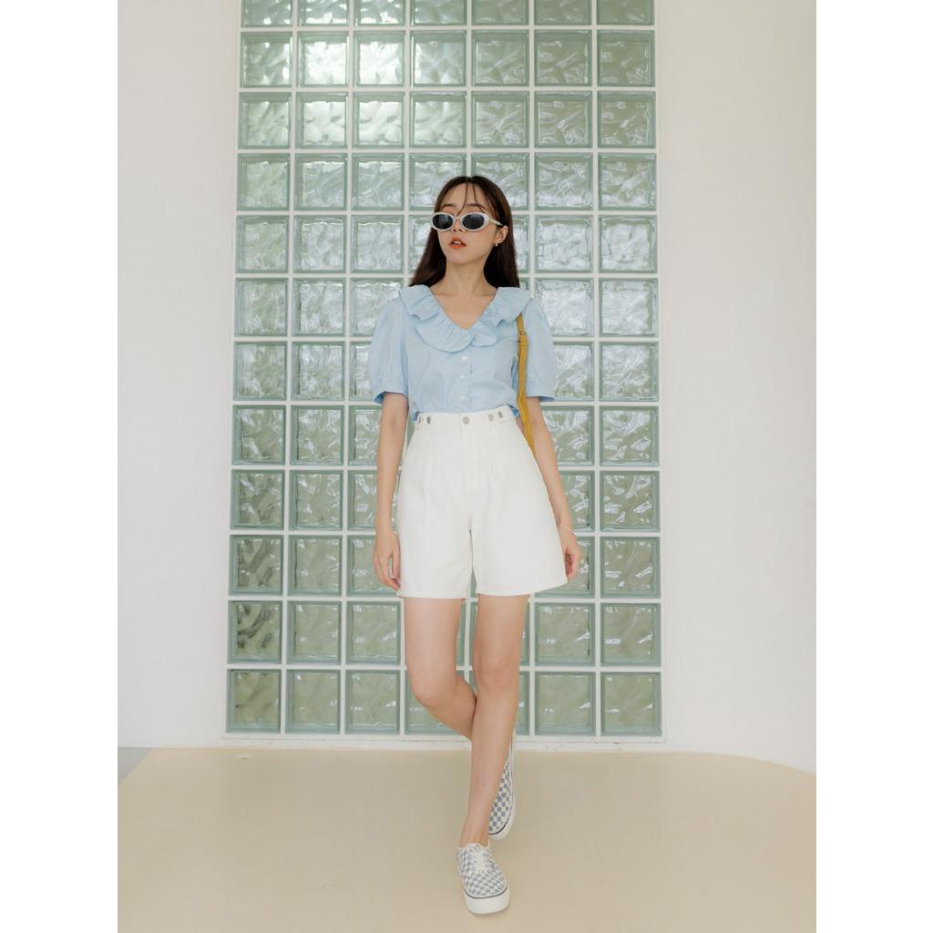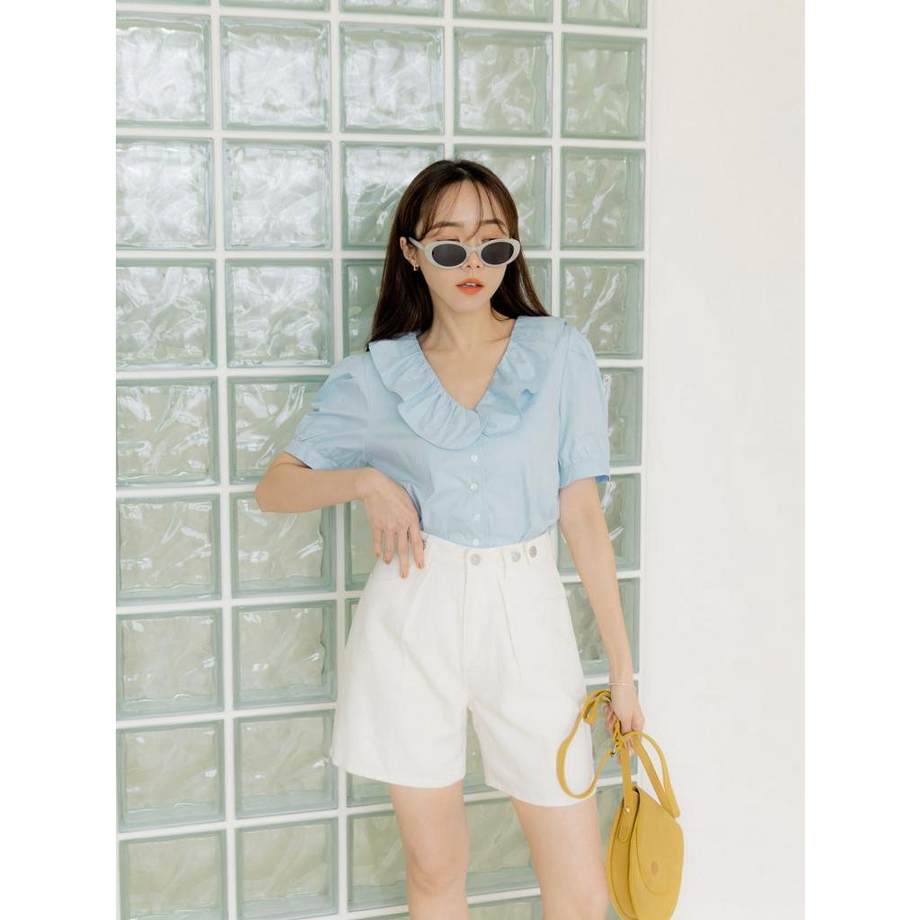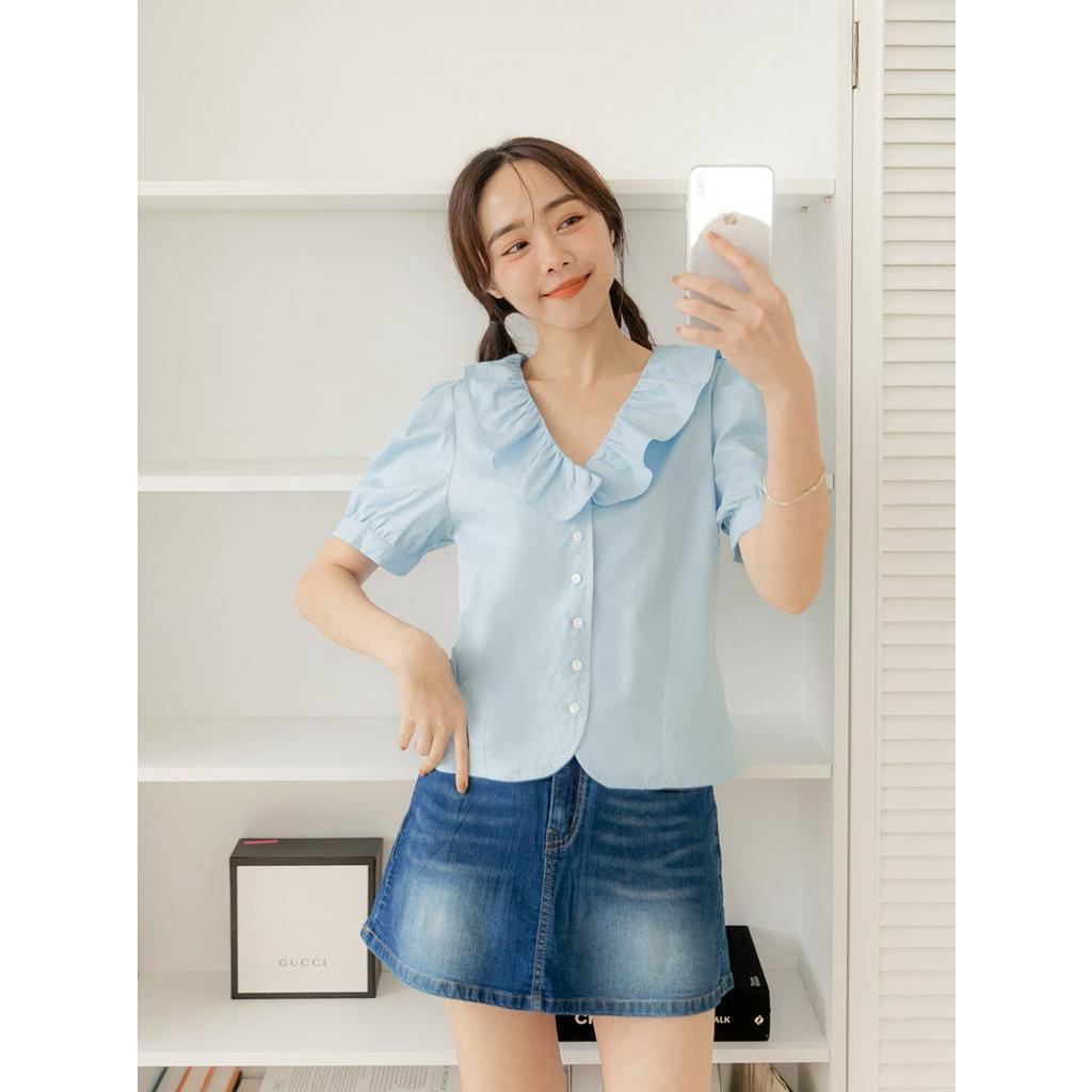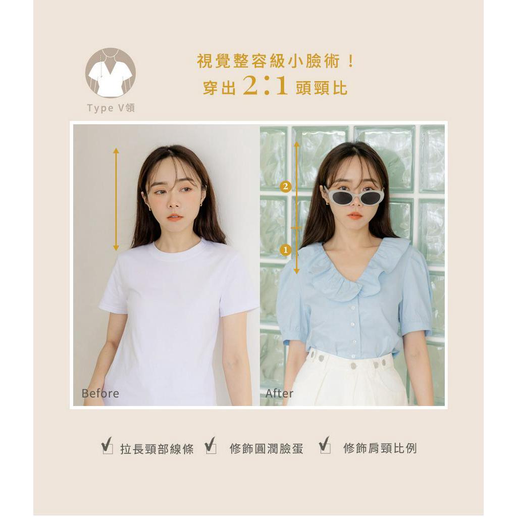 OB嚴選 小V臉.純棉荷葉V領排釦拋袖上衣 《AB18349》大尺碼/現貨/女裝淺水藍,XL|白,M|白,XL|淺水藍,S|淺水藍,M|淺水藍,L|淺水藍,2L|白,S|白,L|白,2LT-shirtsOB嚴選官方旗艦店