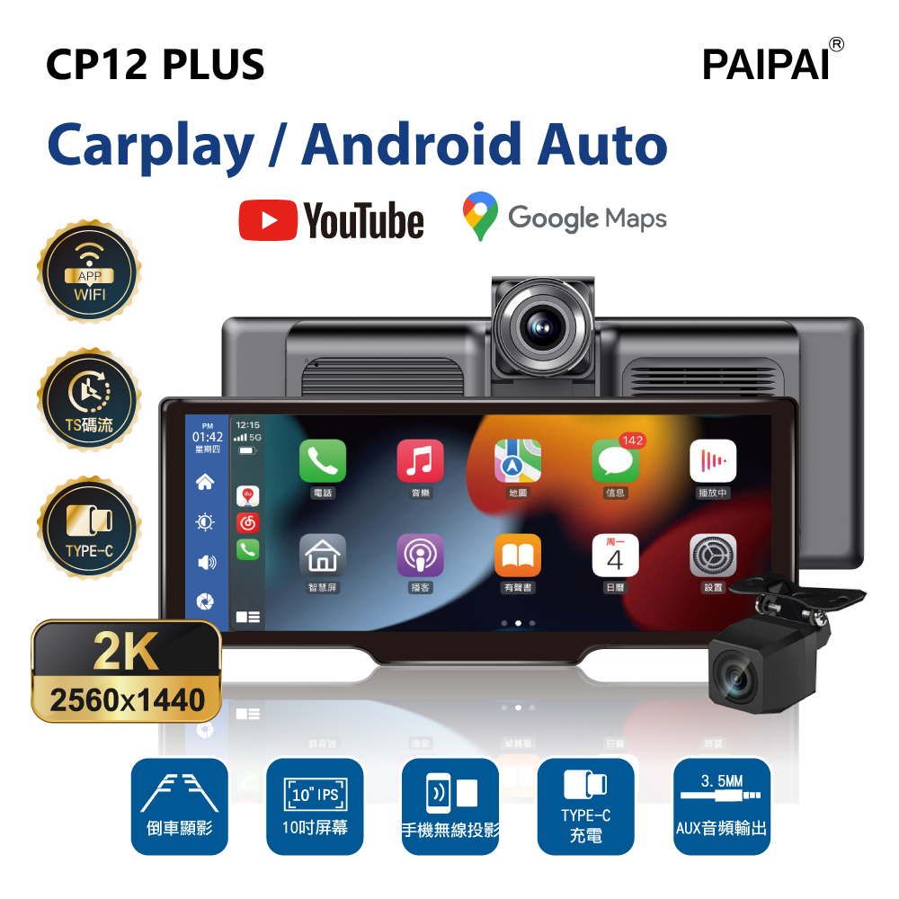【PAIPAI拍拍】2K10吋WIFI多媒體CARPLAY雙鏡頭CP12 PLUS行車記錄器主機|主機+32G|主機+64G|主機+128GCamcorders & Parking CamerasPAIPAI行車紀錄器