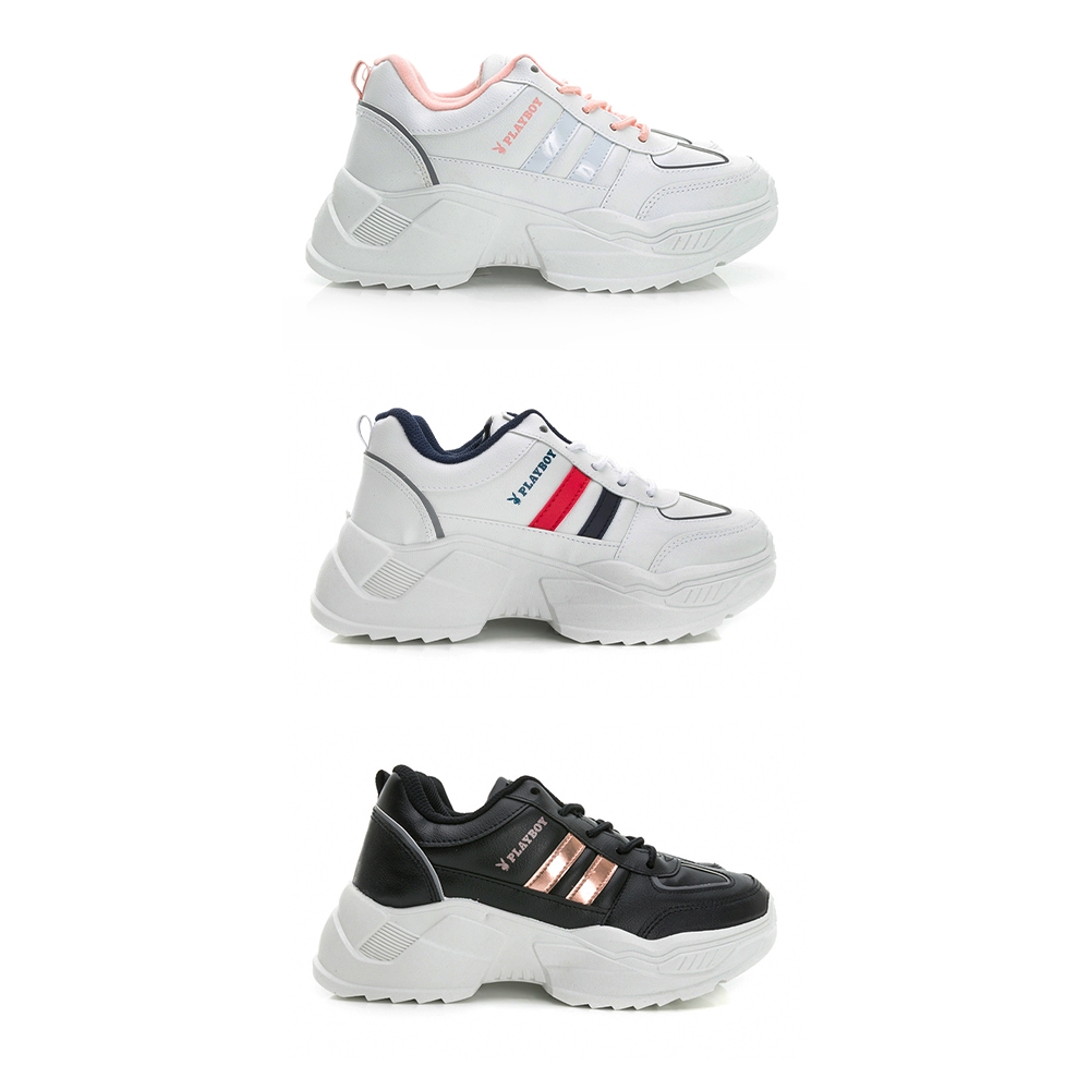 PLAYBOY 漫步雲朵 內增高厚底老爹鞋-白粉/白藍紅/黑玫瑰金(Y9626)