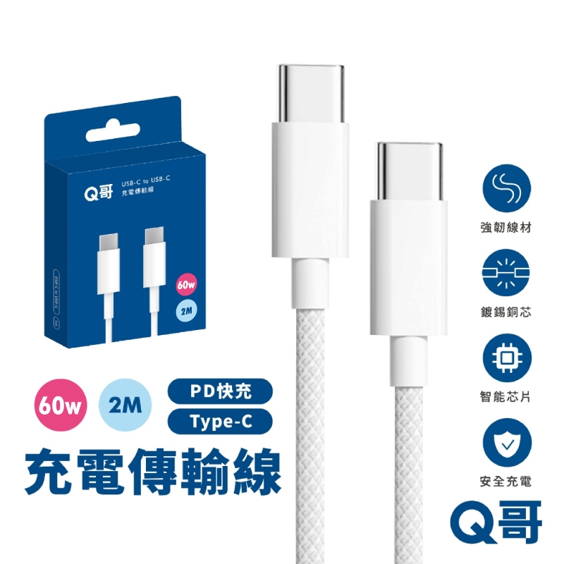 【品牌會員限定兌換禮】 Q哥 快充編織線 2米 傳輸線 PD 60W i15適用 TypeC 充電線 K006編織款|60W 雙USB-C 2米Cables, Chargers & ConvertersQ哥 旗艦商城|最專業的保護貼手機配件