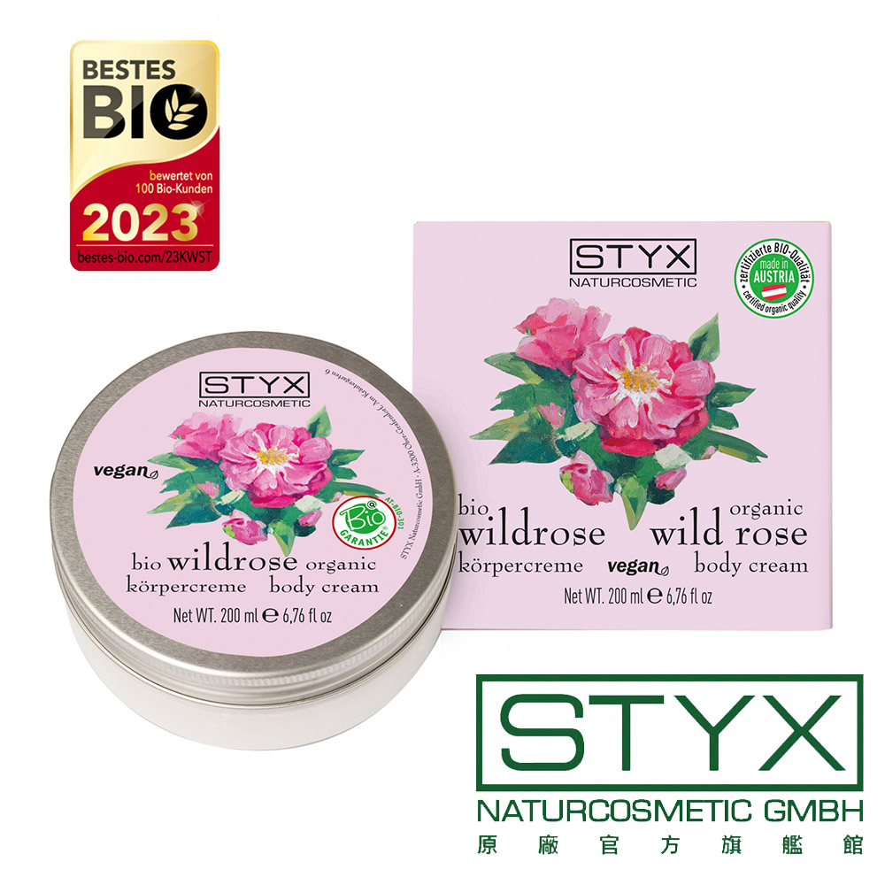 STYX 詩蒂克 有機野玫瑰身體乳霜 奧地利原廠官方授權 歐盟有機認證 美體 保濕 保水 滋潤肌膚200ml|50mlBody Cream, Lotion & ButterSTYX詩蒂克官方旗艦館