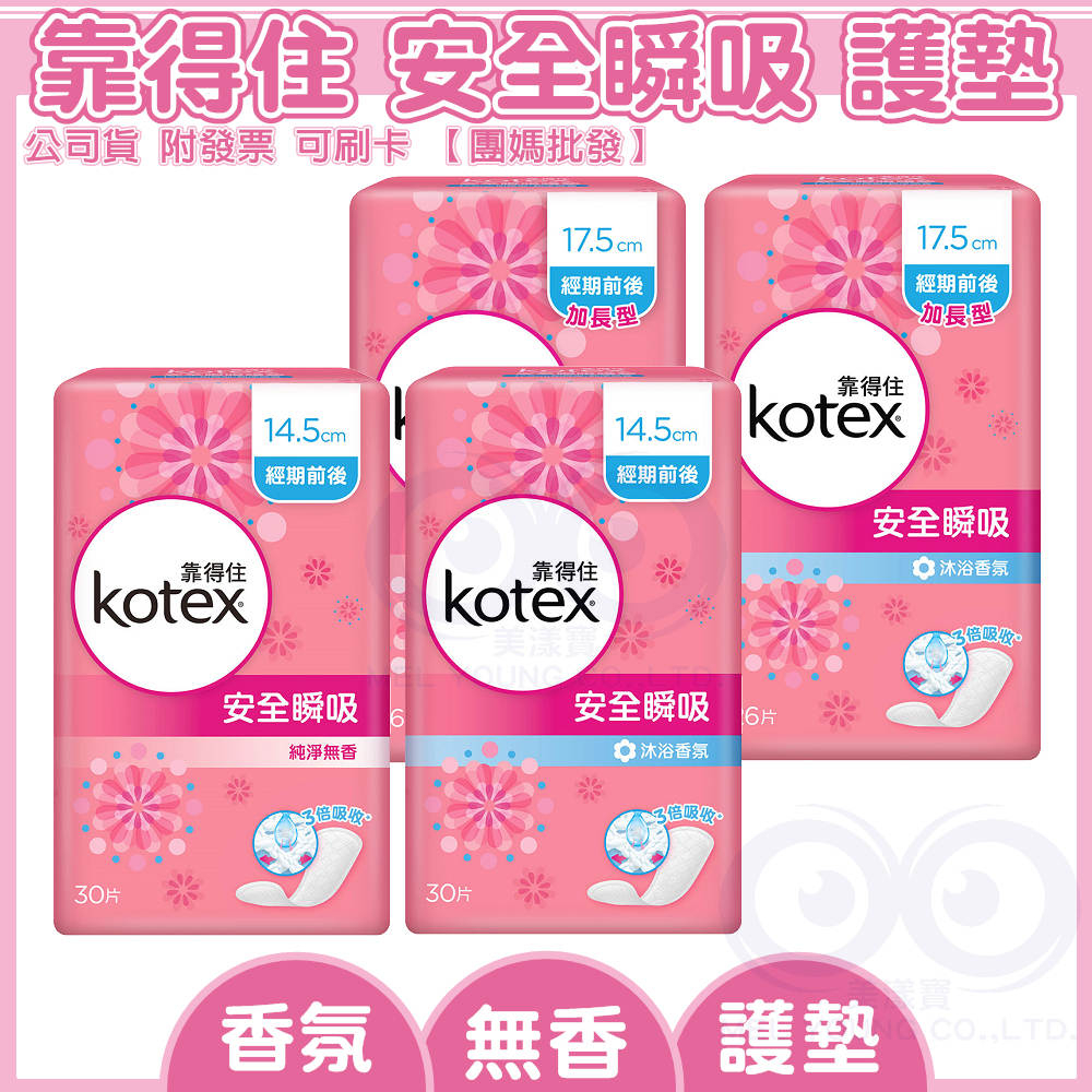 Kotex 靠得住 安全瞬吸 護墊 標準型 純淨無香 沐浴香氛 衛生棉純淨無香17.5cm|純淨無香14.5cmFeminine CareST9PLUS 品牌 零售 批發 團購