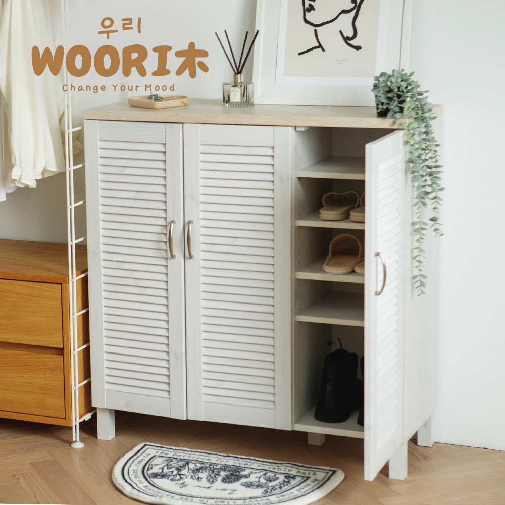 完美主義│Woori木▹DIY商品 百葉三門鞋櫃 鞋櫃 鞋架 直立式鞋櫃 置物櫃 收納櫃 展示櫃【P0014】原木|白配原木Cupboards & CabinetsPeachyLife完美主義
