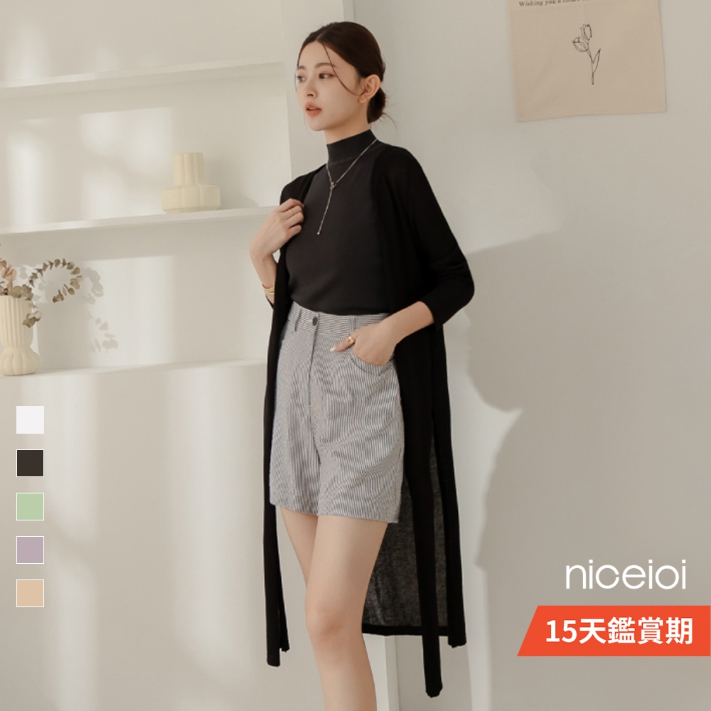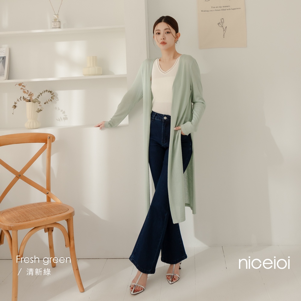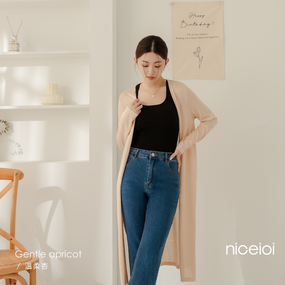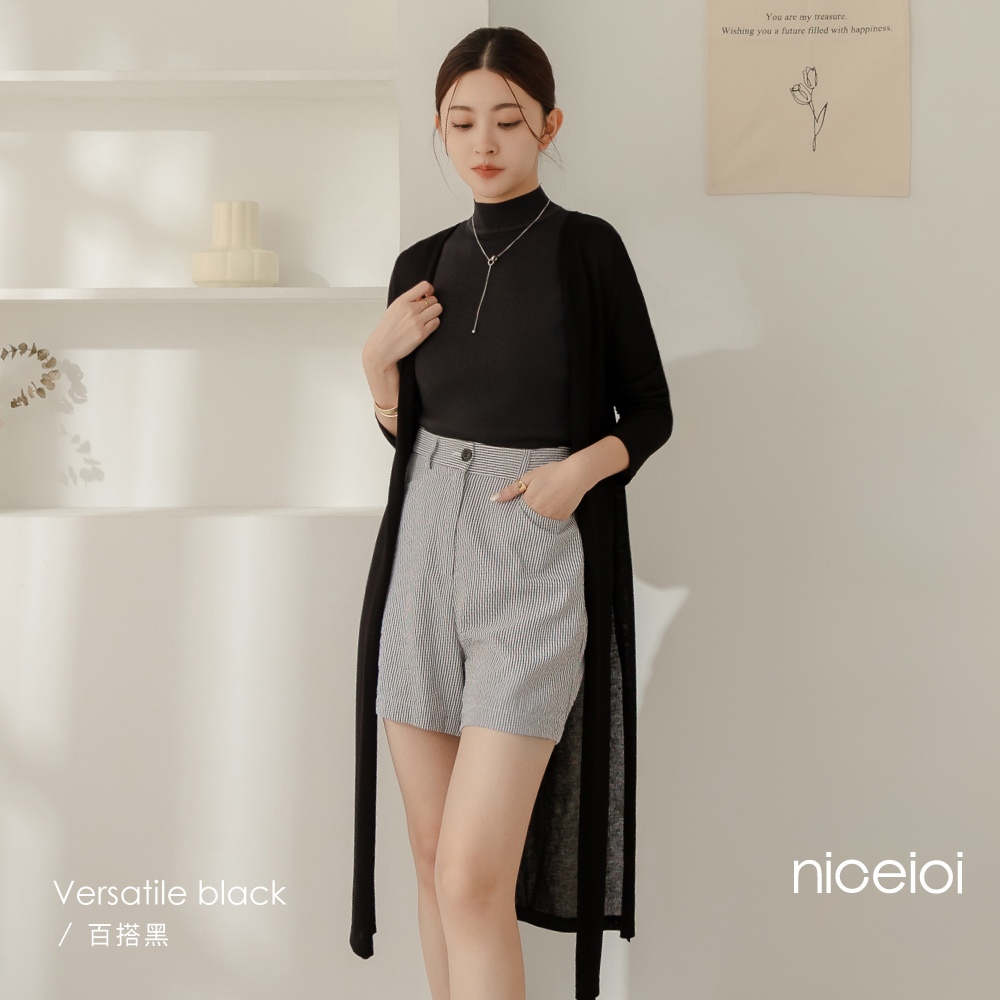 niceioi【特惠】針織外套 外套 薄外套 黑色 [韓系2WAY長版針織外套] 綁帶可調整 超值推薦 大尺碼外套 女裝