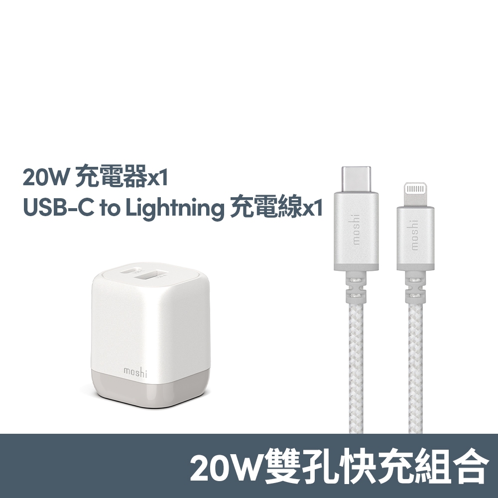 Moshi【快充組】Rewind GaN 20W 充電頭+USB-C to Lightning 充電線 (顏色任選)鈦灰USB-C to Lightning|銀白USB-C to LightningCables, Chargers & Convertersmoshi 官方旗艦店