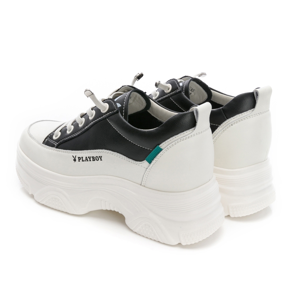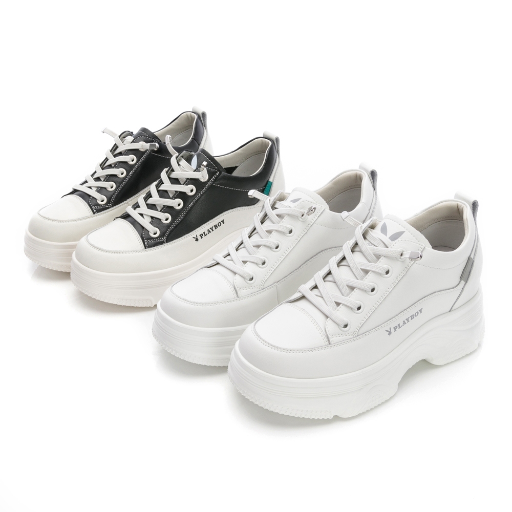 PLAYBOY 完美女神 真皮內增高鞋-白/黑(PY0667)黑,24|黑,245|黑,25|白,23|白,235|白,24|白,245|白,25|黑,23|黑,235PLAYBOY 女鞋官方旗艦店