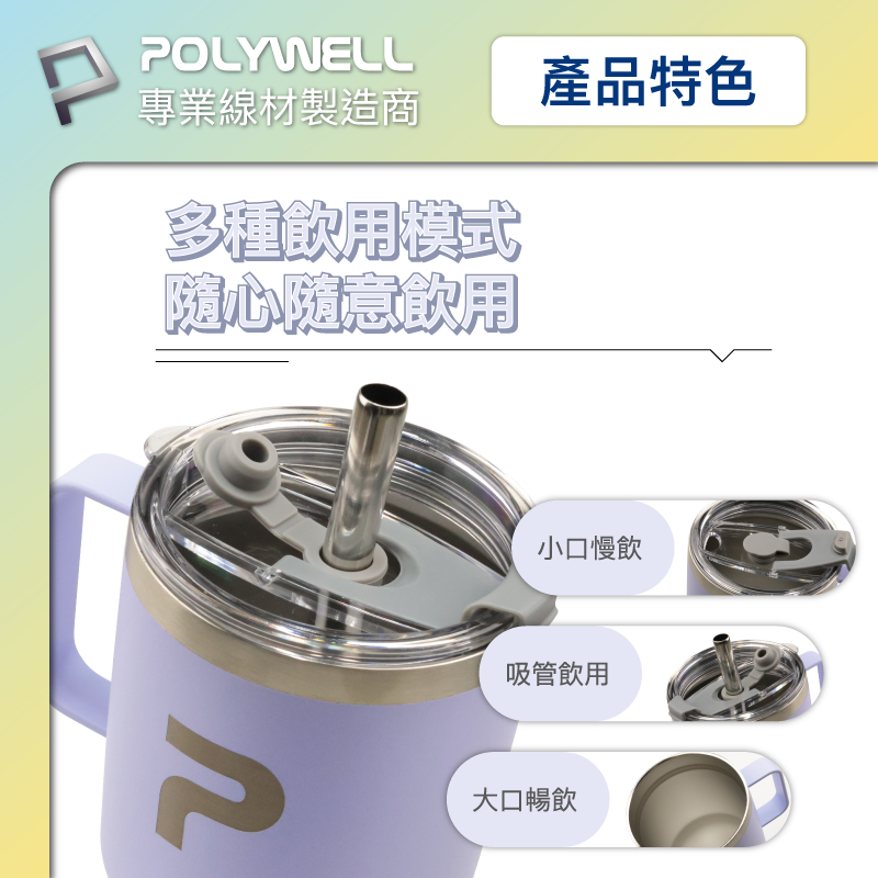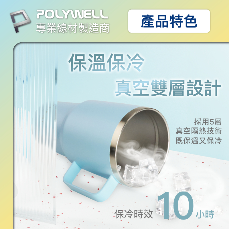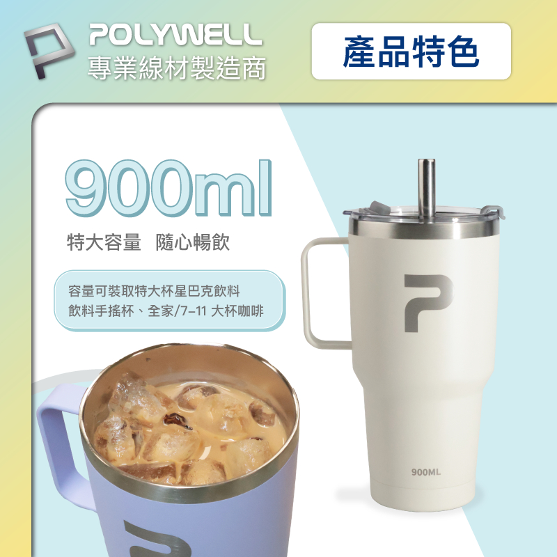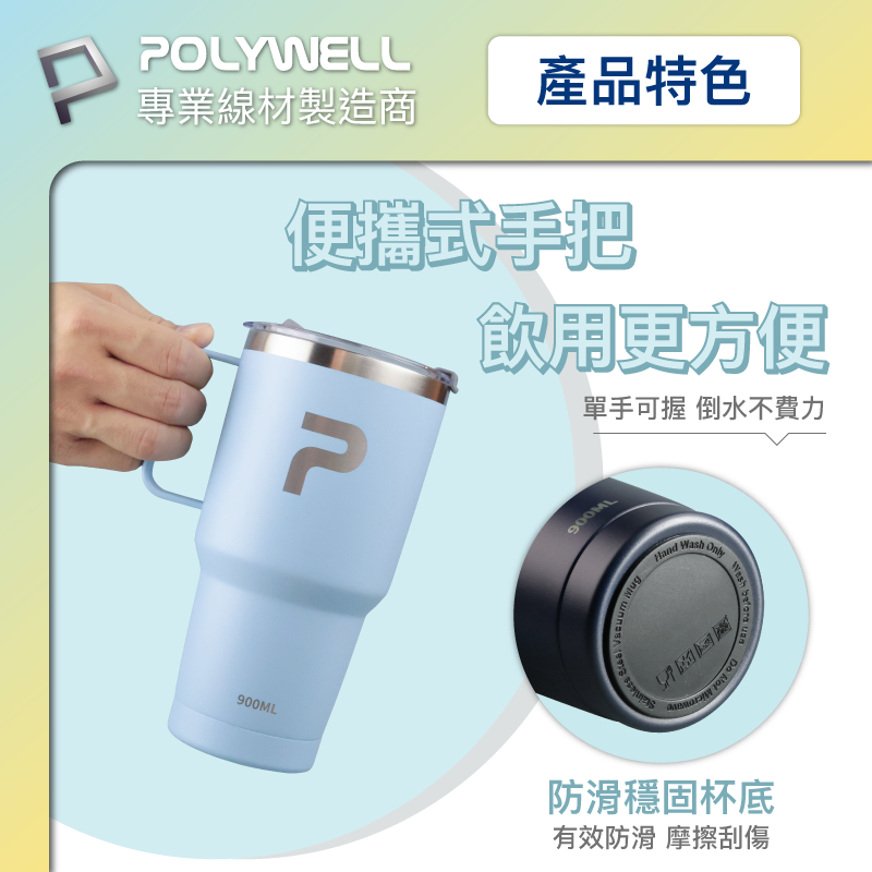 POLYWELL 不鏽鋼手把冰霸杯 900ML SUS304不鏽鋼材質 大容量保溫環保杯 手搖飲料杯 寶利威爾 台灣現貨