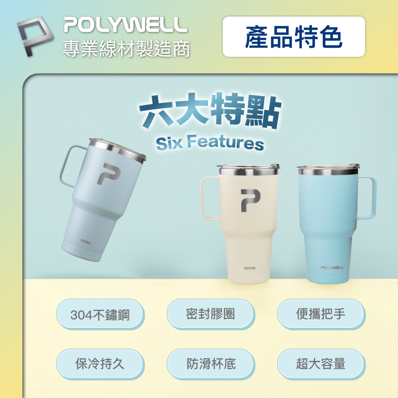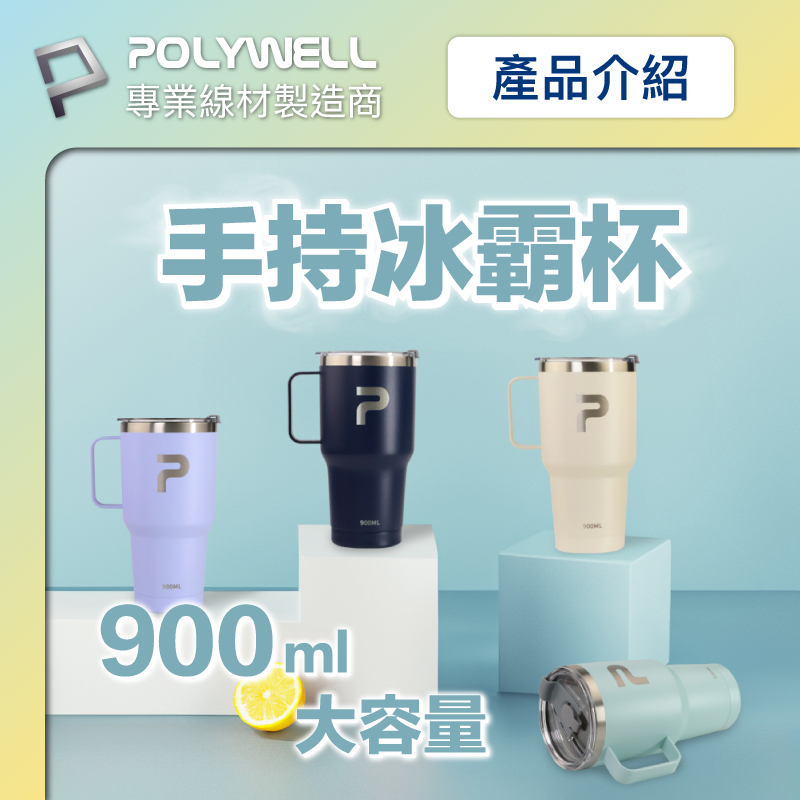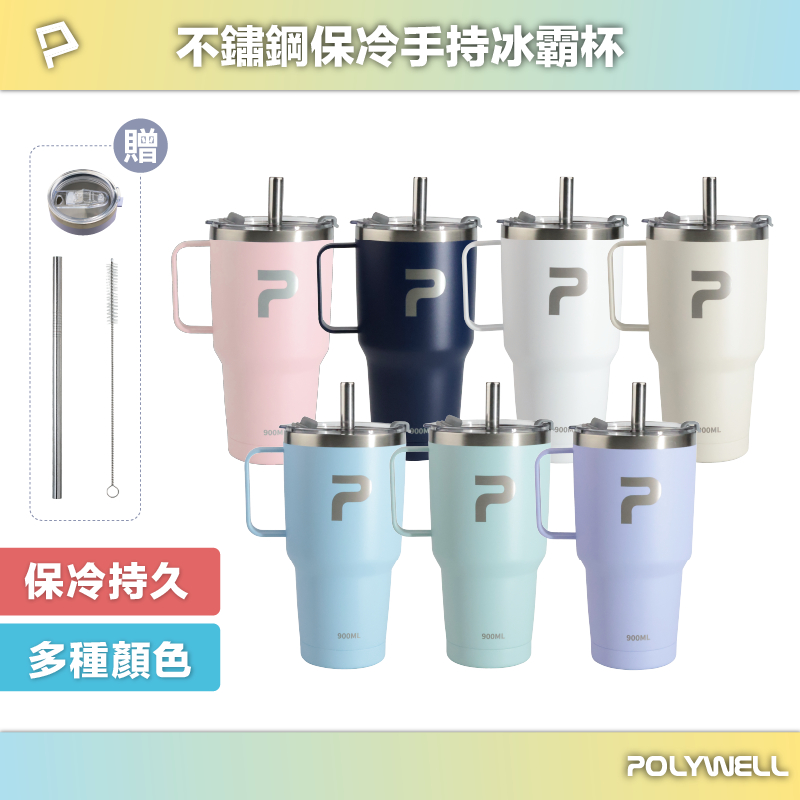 POLYWELL 不鏽鋼手把冰霸杯 900ML SUS304不鏽鋼材質 大容量保溫環保杯 手搖飲料杯 寶利威爾 台灣現貨白色|湖水綠|紫色|深藍色|米白色|水藍色|粉紅色Water Bottles & AccessoriesPOLYWELL寶利威爾官方旗艦店