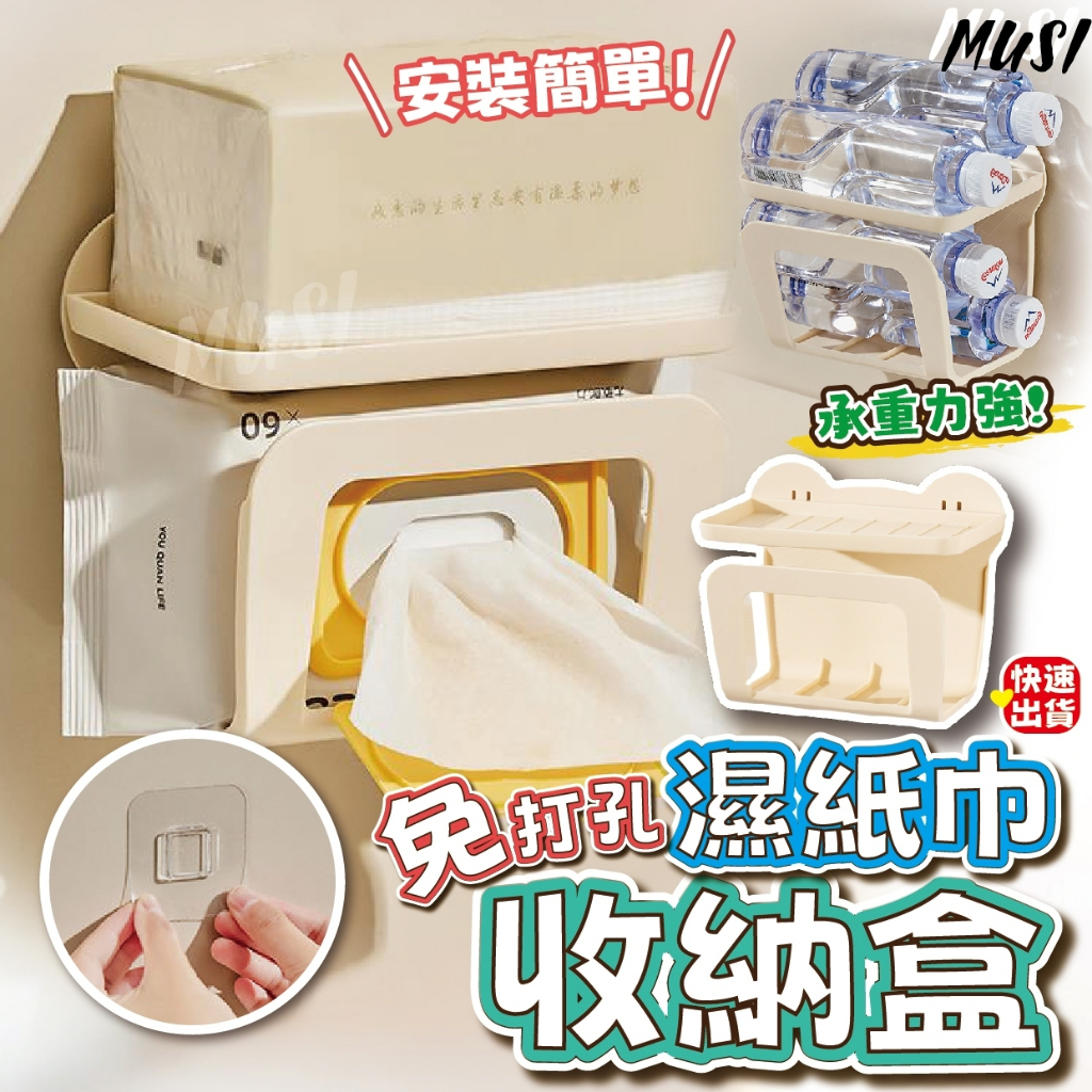 [隔天發貨]衛生紙收納 衛生紙盒 濕紙巾收納 免打孔壁掛 濕紙巾盒 濕巾收納盒 壁掛收納免打孔濕紙巾收納盒-奶油白 現貨隔天發Tissue HoldersMUSI 口罩&包包帽子 專賣