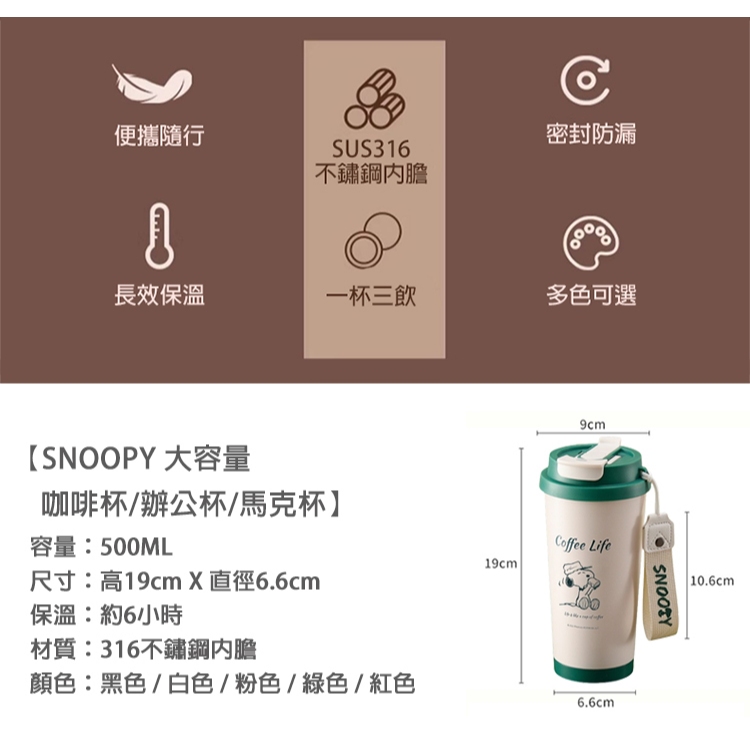 【STAR BABY】SNOOPY 史努比純色大容量 升級優質316不鏽鋼 咖啡杯/辦公杯/馬克杯500ML白色|綠色|紅色|黑色|粉色Cups, Mugs & GlassesSTAR BABY 官方直營店