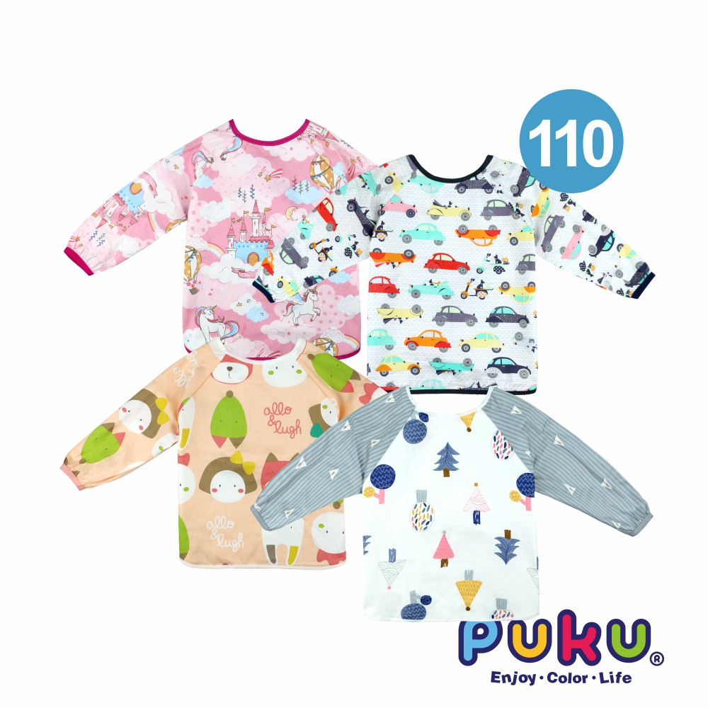 PUKU藍色企鵝 長袖防水圍兜衣(四款)噗噗汽車90cm|動物夥伴90cm|夢幻城堡90cm|森林小樹90cm|噗噗汽車110cm|動物夥伴110cm|夢幻城堡110cm|森林小樹110cmBibsPUKU 藍色企鵝官方旗艦店