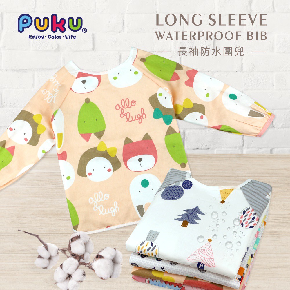 PUKU藍色企鵝 長袖防水圍兜衣(四款)