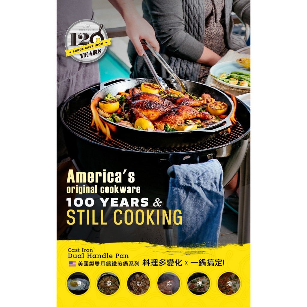【美國LODGE】美國製雙耳圓形鑄鐵平底煎烤鍋-21cm