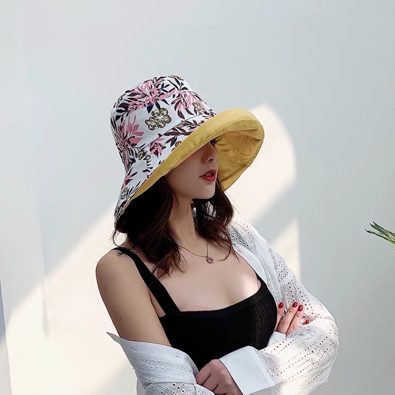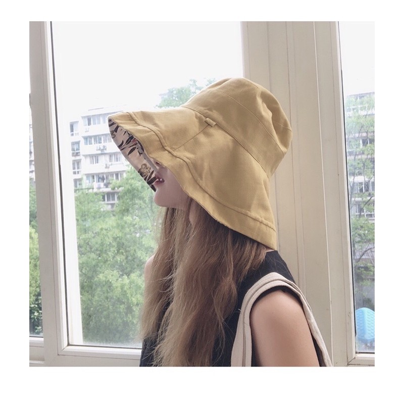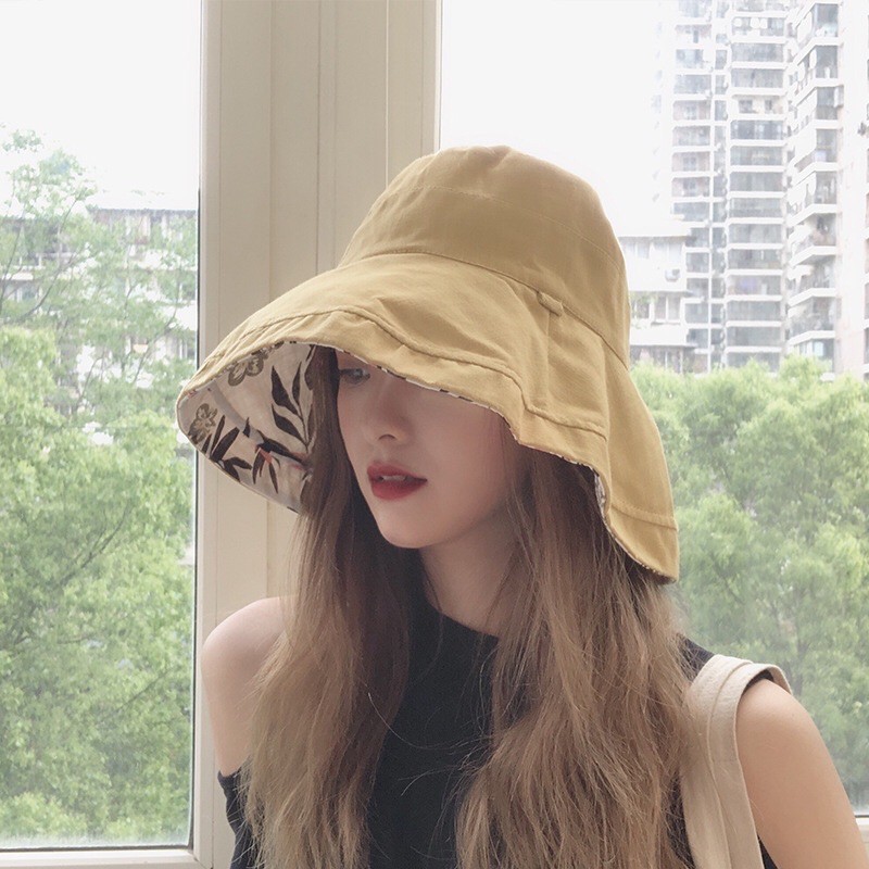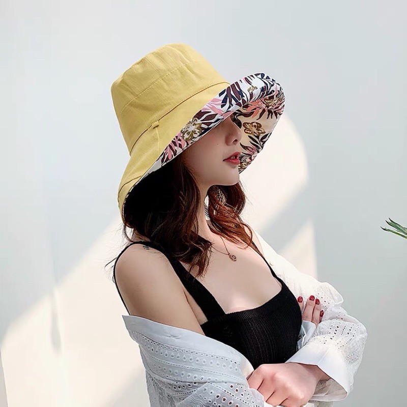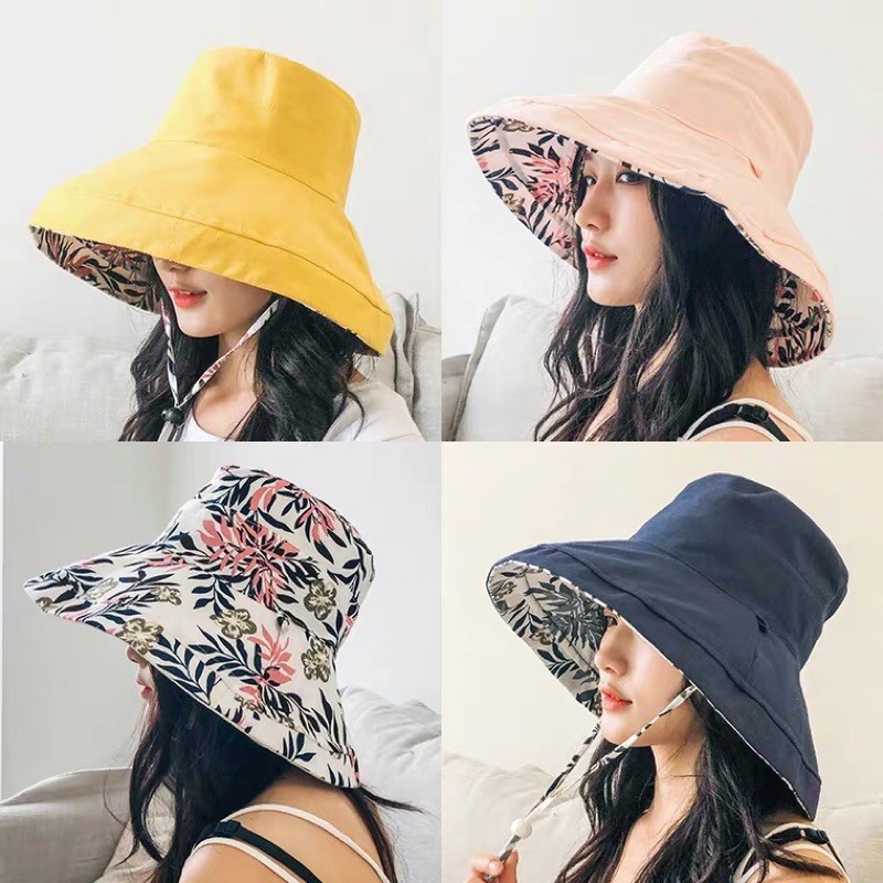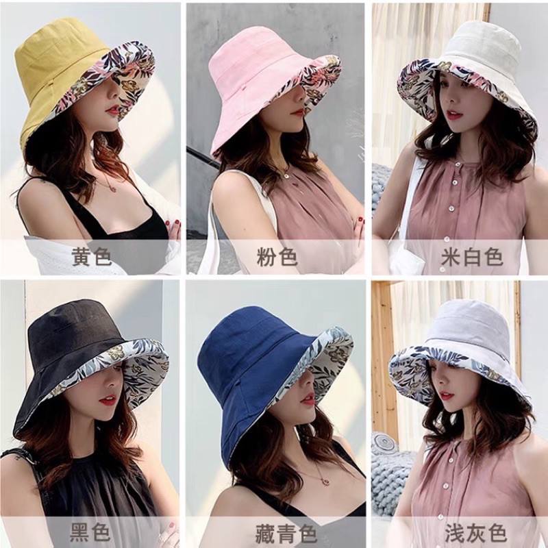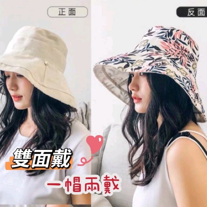 [MUSI創意玩星球]雙面戴漁夫帽 女素色帽 遮陽帽 雙面花色日系大帽檐 百搭防曬紫外線遮陽帽子夏韓國網紅太陽女帽