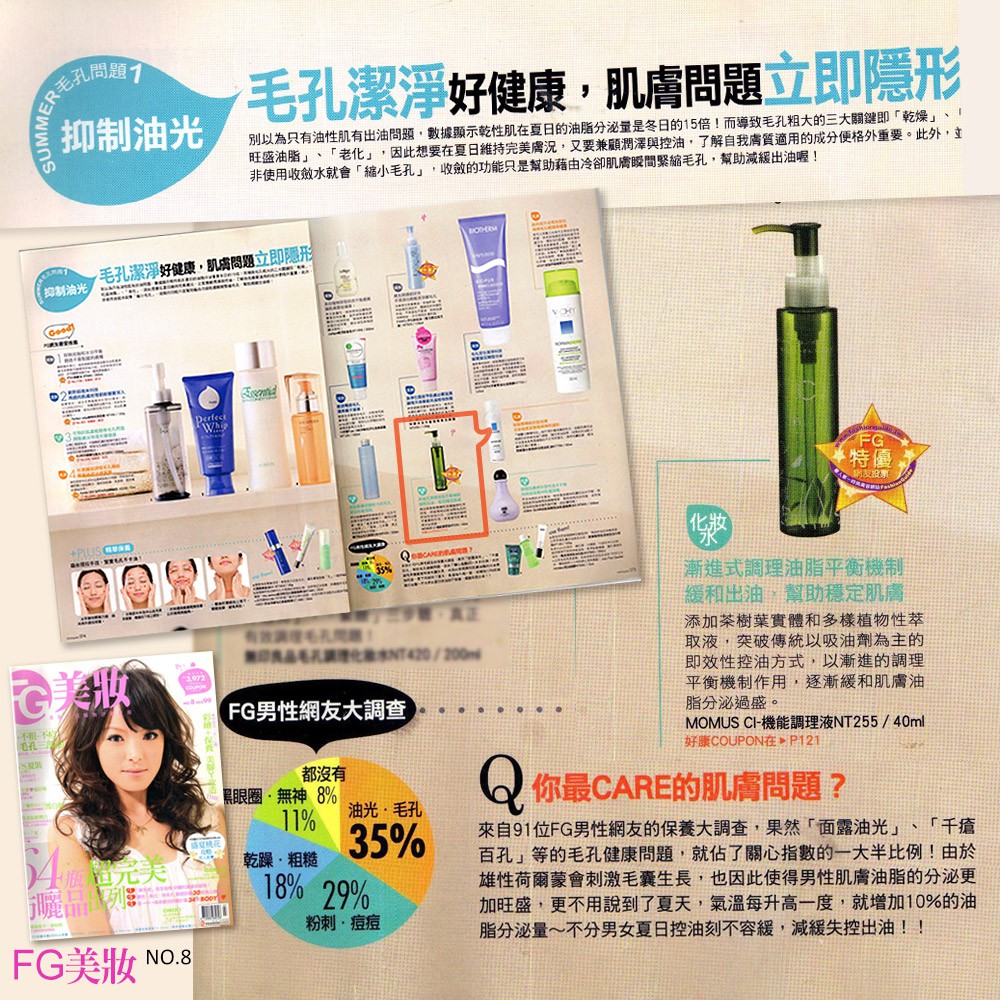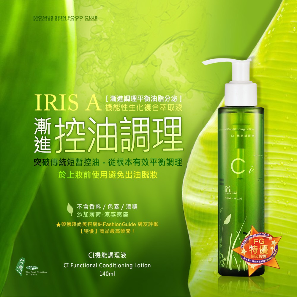 《送吸油面紙》MOMUS CI機能調理液 140ml (控油調理化妝水) (油痘肌) – 妝前使用防出油脫妝