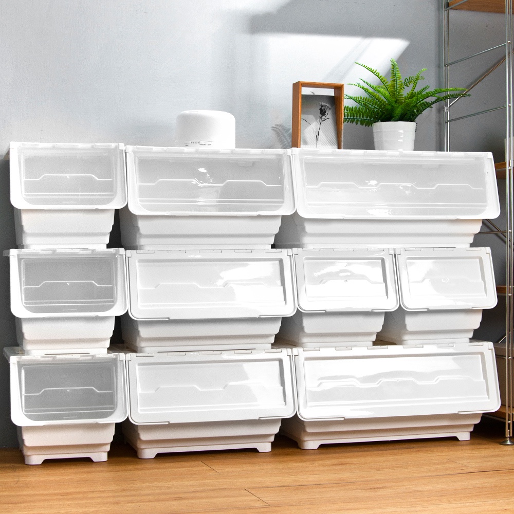 MR.BOX 大面寬典雅斜口上掀式可堆疊附輪加厚收納箱 3種尺寸顏色可選 [免運](72公升 4入組)-純白款(透明掀蓋)|(33公升 6入組)-純白款(透明掀蓋)|(54公升 6入組)-純白款(透明掀蓋)Storage Boxes, Bags & BasketsMr.Box l 收納箱 收納櫃 洗衣籃 曬衣架 行李箱