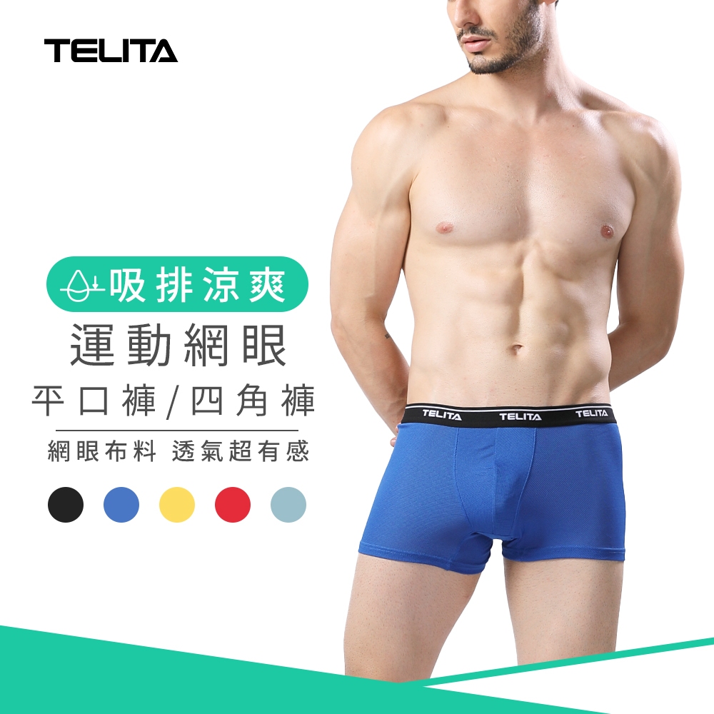 【TELITA】吸溼涼爽運動網眼平口褲/四角褲 TA403 透氣舒適 網眼設計 立體剪裁 展現男性獨特魅力
