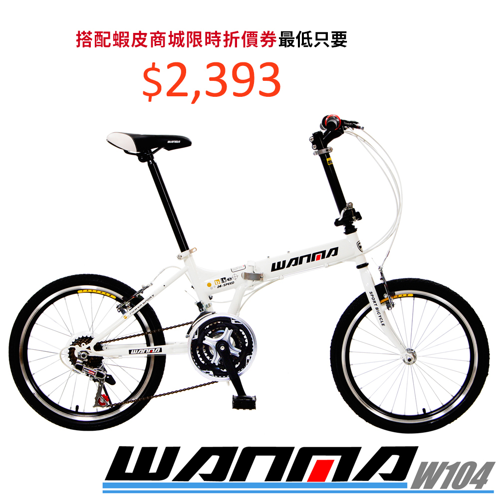 WANMA 聯名品牌20吋24速城市穿梭折疊車W104 服務升級免組裝黑(輪圈黑或紅隨機出)|白|紅|藍|橘|粉CyclingStepDragon 史特龍電動車自行車