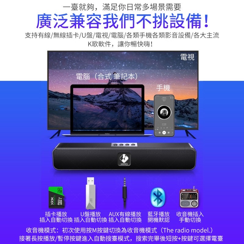 HERO 四顆單元喇叭 10W 藍芽音響 藍牙喇叭 藍牙5.0 NCC認證 多種模式 電腦喇叭 電腦音響首選 台灣現貨HERO 四顆單元喇叭 10W 藍芽音響,一拖三充電線1.2m|HERO 四顆單元喇叭 10W 藍芽音響,AUX 3.5mm尼龍編織音源線1.5mSpeakersSHOWHAN手機周邊生活用品旗艦店