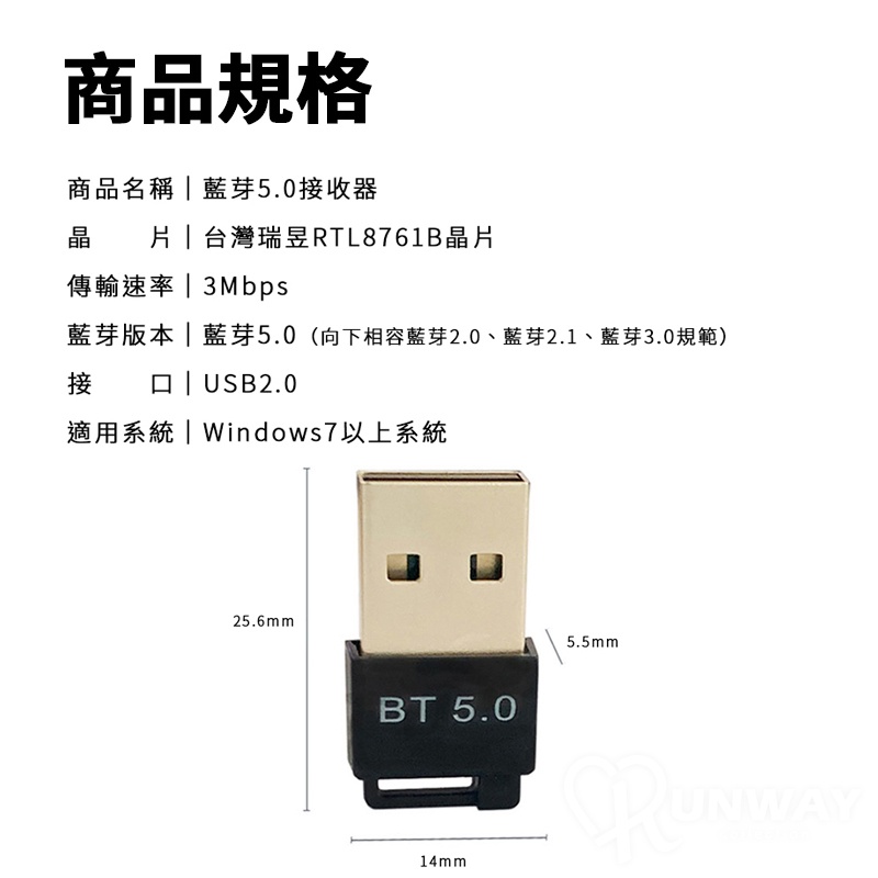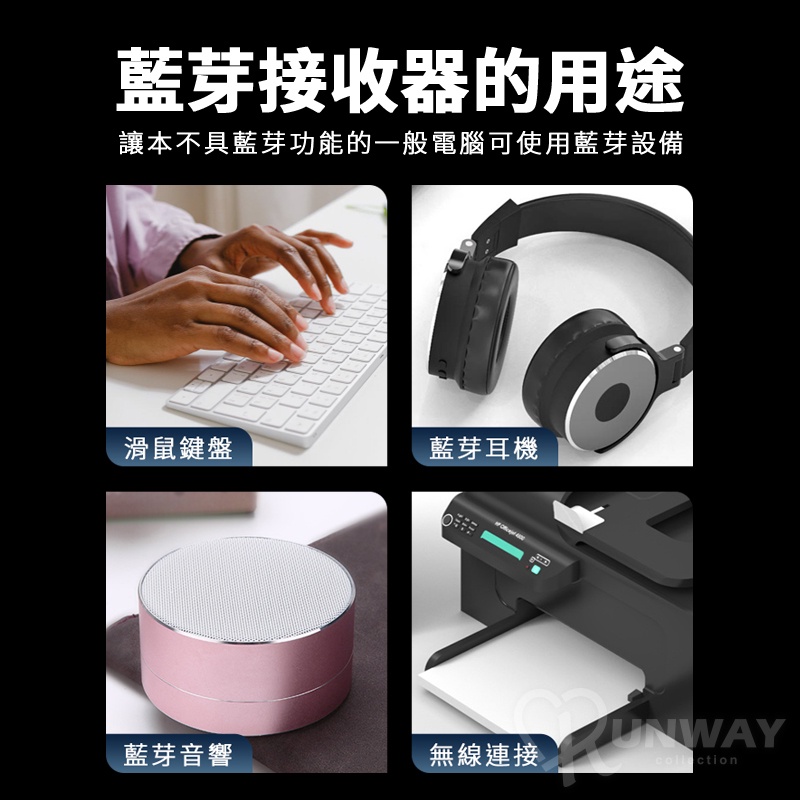 藍芽5.0 接收器 USB 藍牙適配器 電腦專用 外接藍牙 藍芽發射器 音源 資料傳輸 台灣瑞昱晶片藍芽5.0接收器,黑色Runway Collection