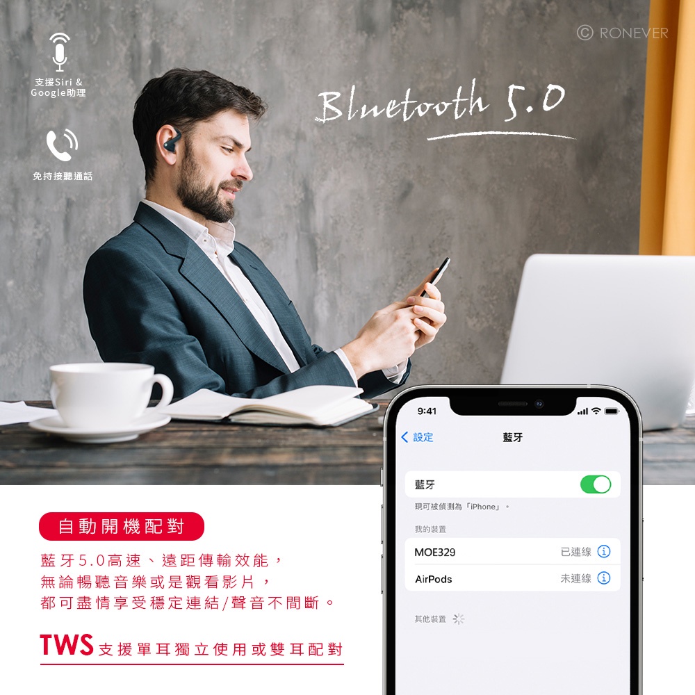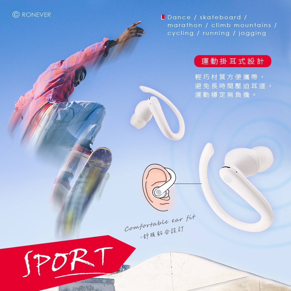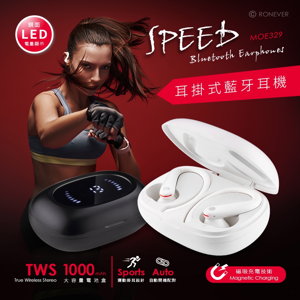 RONEVER MOE329 / SPEED耳掛式藍牙耳機黑色|白色RONEVER 官方品牌館