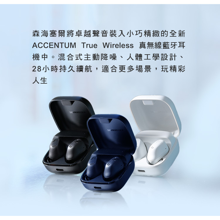 Sennheiser 森海塞爾 ACCENTUM True Wireless 降噪真無線藍牙耳機白色|黑色|藍色(網路限定款)Sennheiser consumer hearing 森海塞爾耳機官方旗艦店