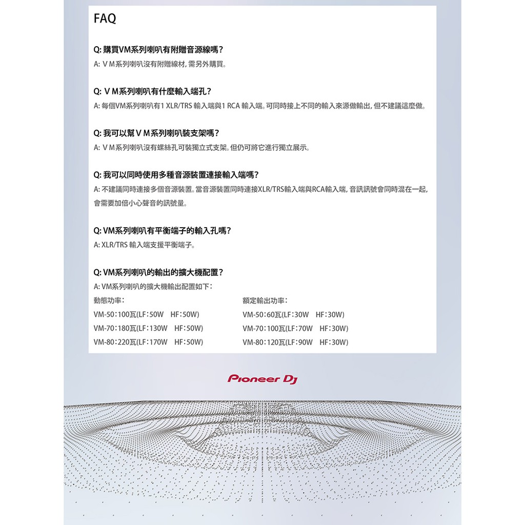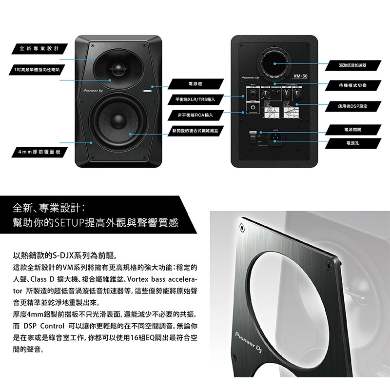 Pioneer DJ VM系列主動式監聽喇叭(VM-50/VM-70/VM-80)(單顆販售)5吋(黑色)|5吋(白色)|6.5吋(黑色)|8吋(黑色)SpeakersPioneer DJ 先鋒行動館