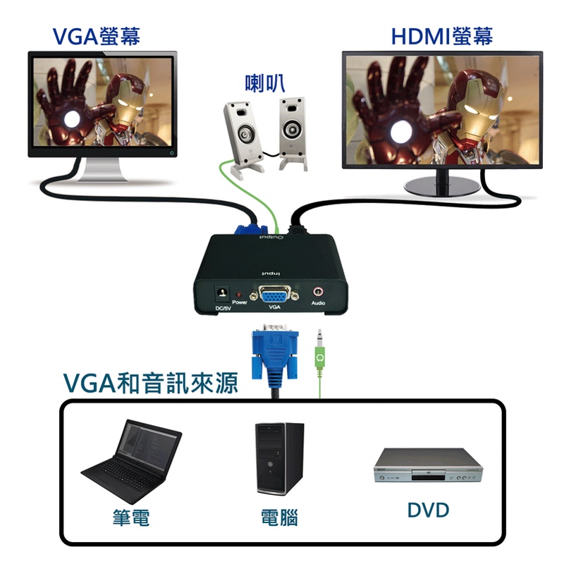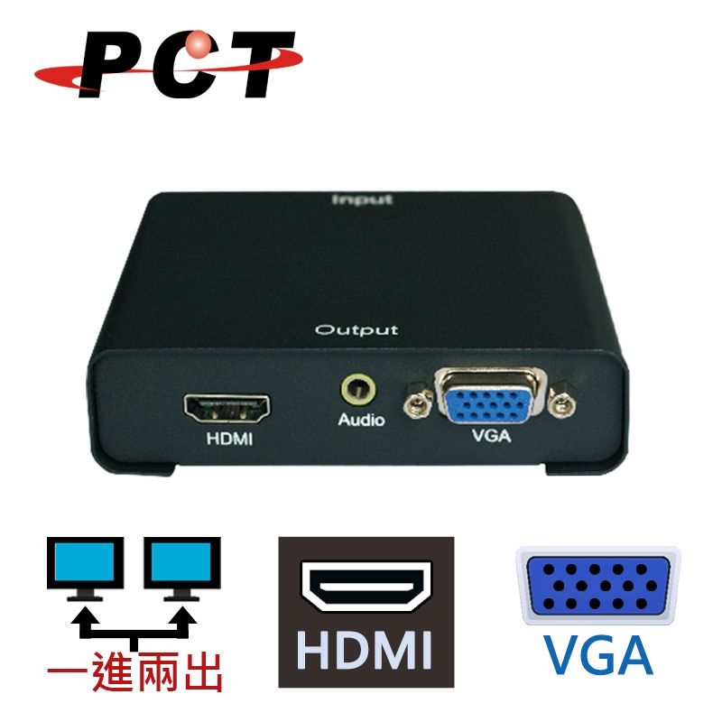【PCT】1進2出 VGA轉HDMI & VGA分配器(VHC111)【PCT】1進2出 VGA轉HDMI & VGA分配器(VHC111)PCT銘鵬科技 KVM USB-C專賣店