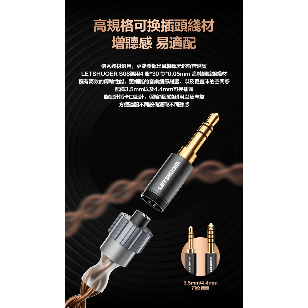 鑠耳 S08 平板耳機 平面振膜單體 入耳式耳機 3.5 4.4 可換插頭 0.78可換線 台灣公司貨 一年保固黑色|銀色Pifferia Goods|劈飛好物商城