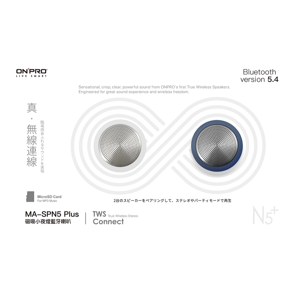 ONPRO MA-SPN5 Plus 真無線藍牙5.4磁吸小夜燈喇叭夜空藍|雪酪白|2入(藍+白)SpeakersONPRO超急速充電 官方旗艦館