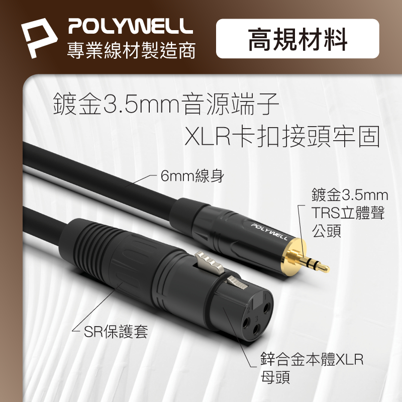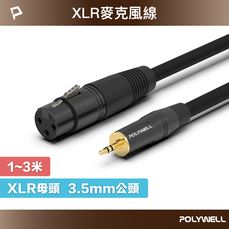 POLYWELL 3.5mm 立體聲 轉 XLR 公對母 1米~3米 卡農 Cannon 佳能 麥克風線 寶利威爾 台灣2米/200公分|3米/300公分|1米/100公分POLYWELL寶利威爾官方旗艦店