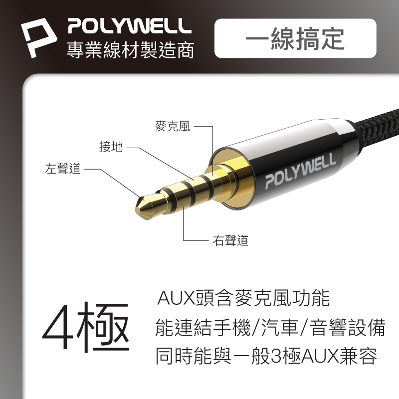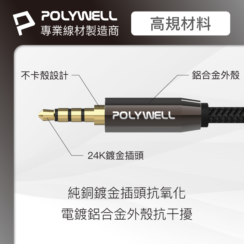 POLYWELL 3.5mm 立體聲麥克風音源線 50公分~5米 公對公 4極 音頻線 寶利威爾 台灣現貨50公分|1米|2米|3米|5米POLYWELL寶利威爾官方旗艦店