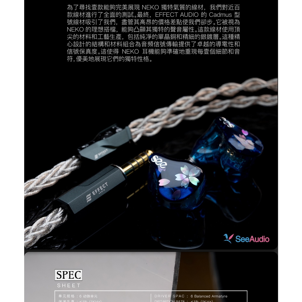 See Audio NEKO 六動鐵 入耳式耳機 Effect Audio Cadmud II 二代線 公司貨|劈飛好物NEKO藍色 (Cadmud II二代線|日本限量版 紅黑(二代線Pifferia Goods|劈飛好物商城